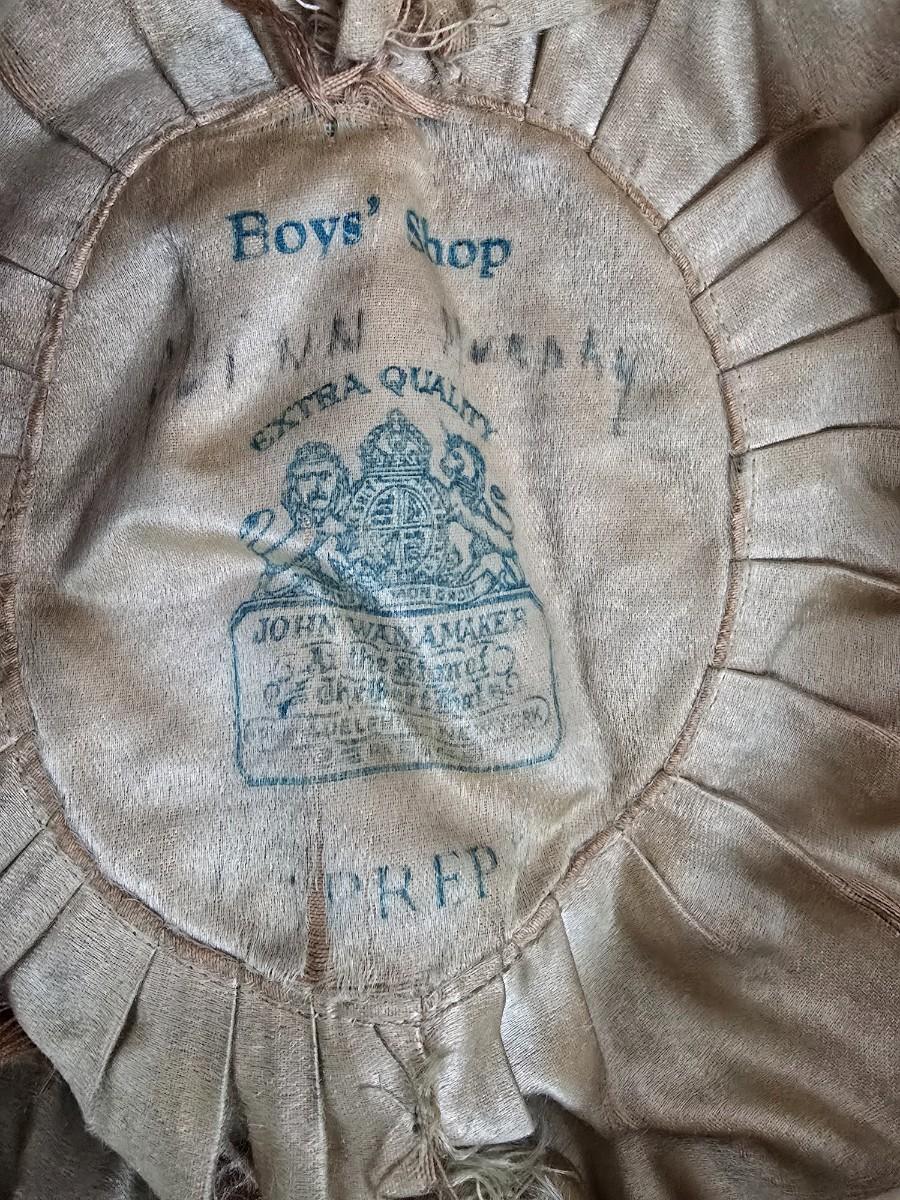 LOT 203: Wannamakers' Boys Shop Cap with Antique Pantaloons, Wool Shorts, and Ribbons