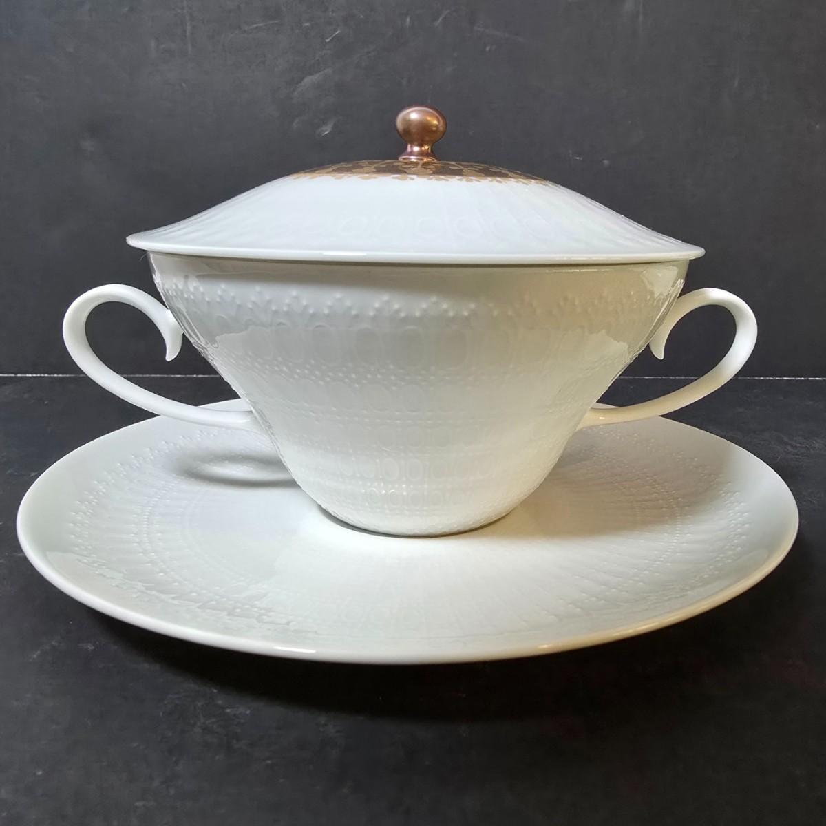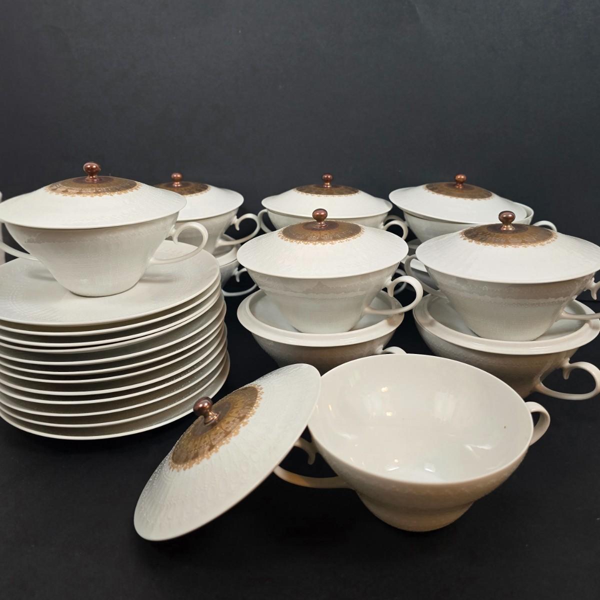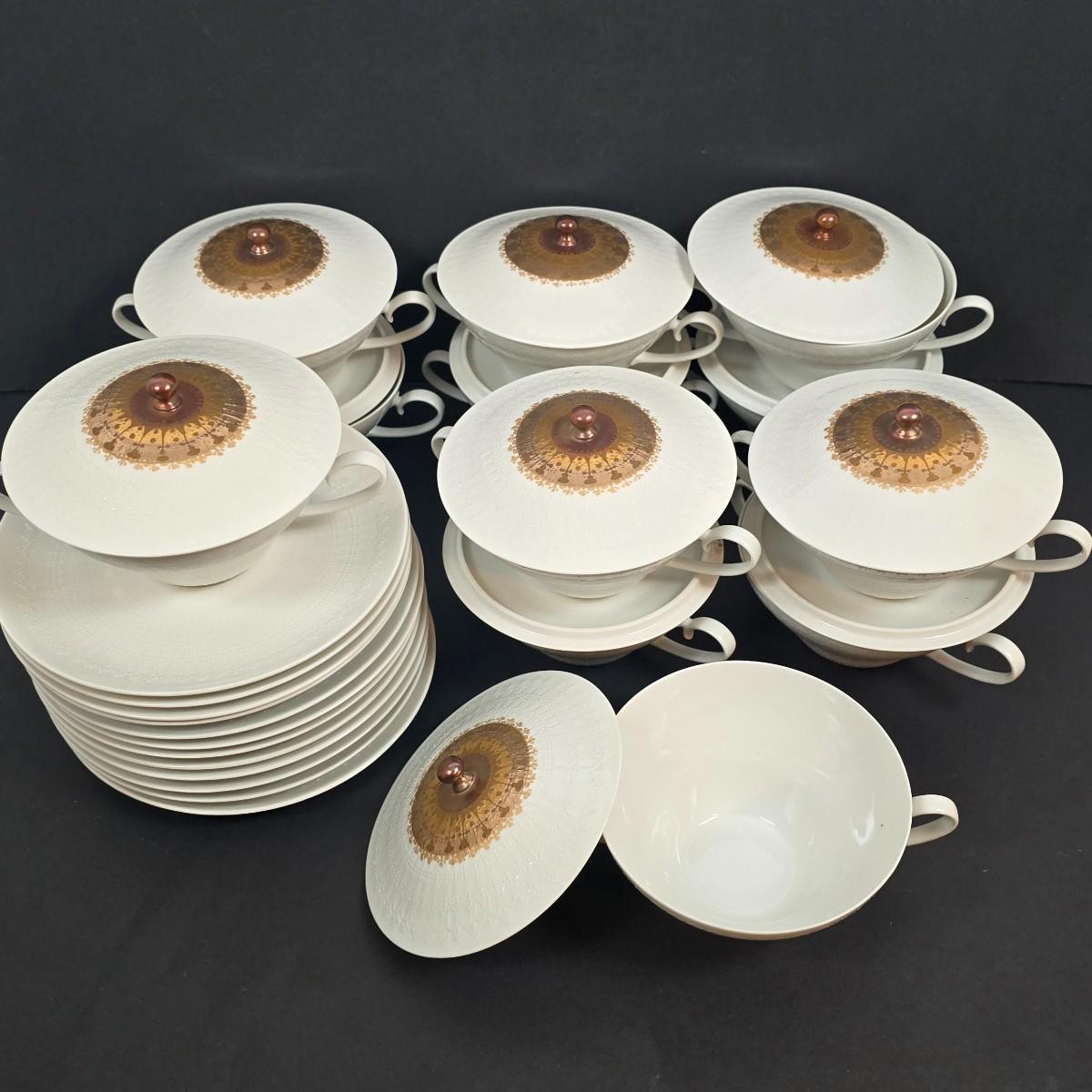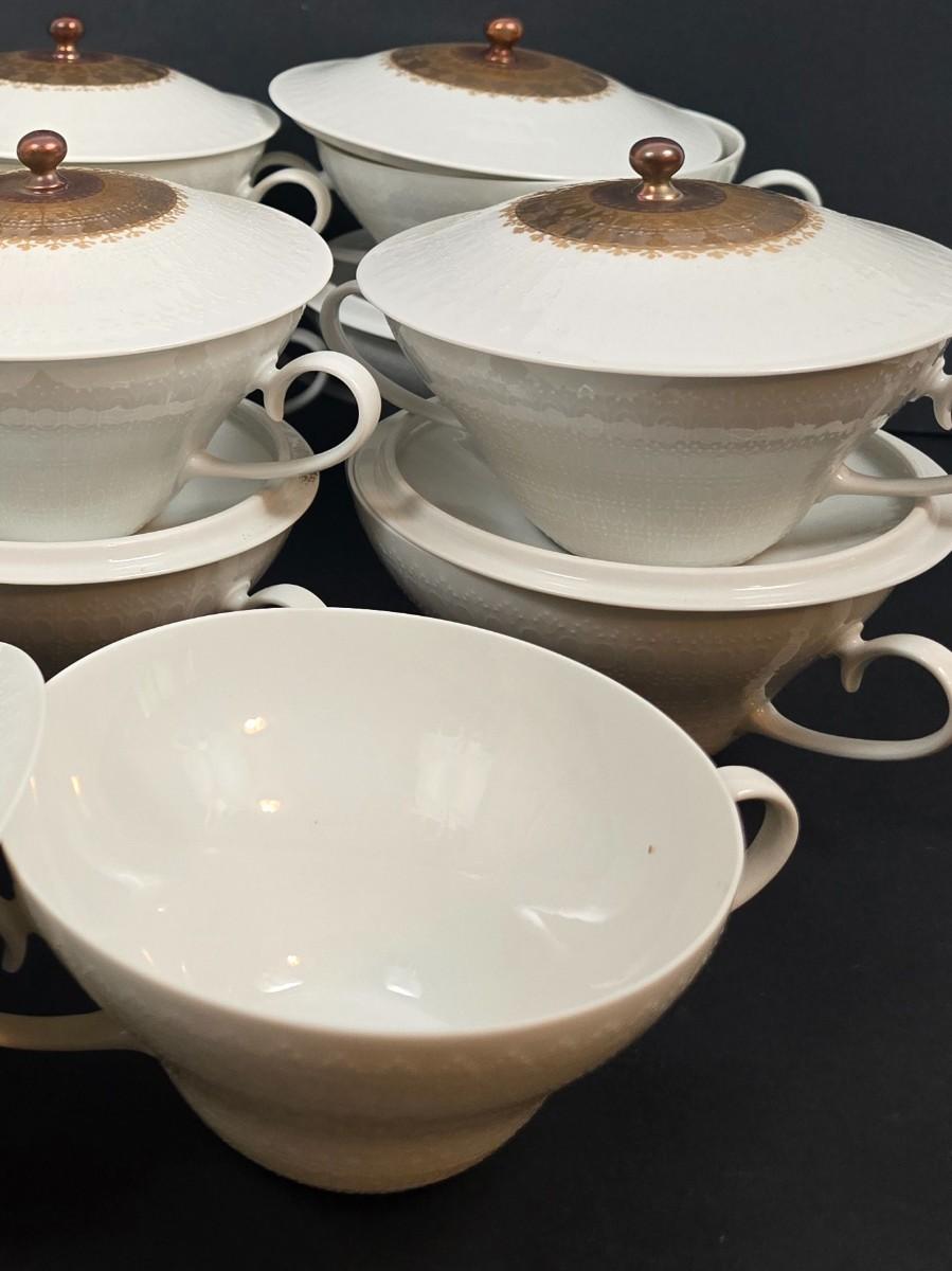 LOT 204: Vintage Rosenthal "Romance" Collection: Covered Cream Soup Bowls w/Plates