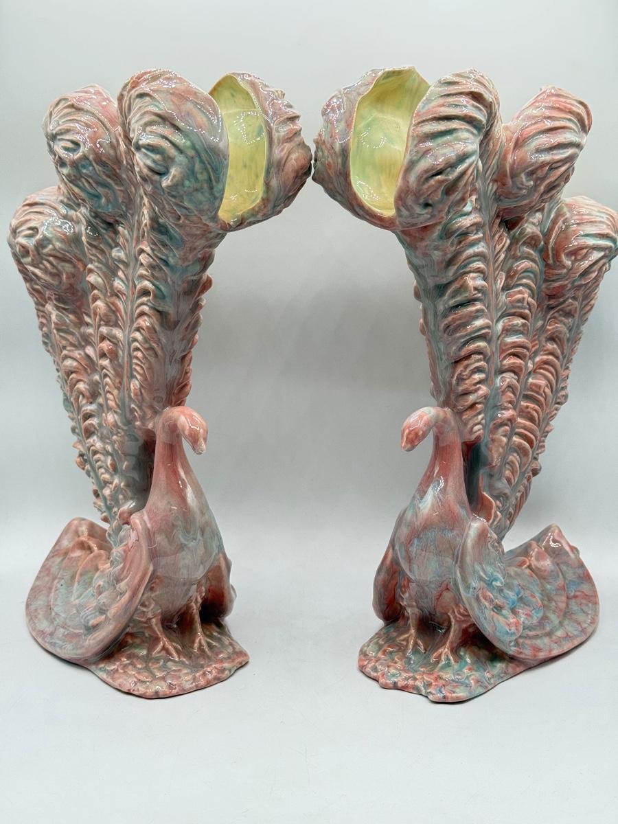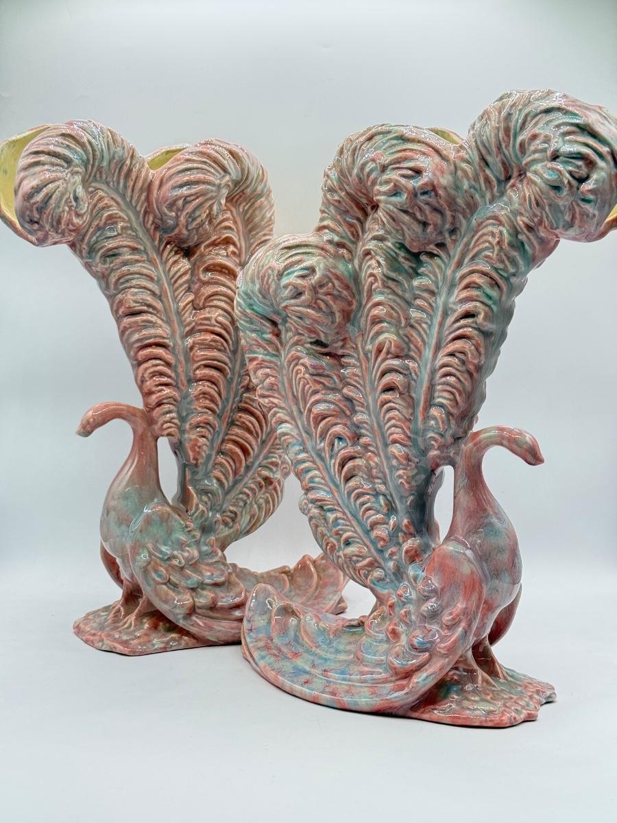 LOT 5: Vintage Pair of Royal Haeger Royal Hickman Peacock Vases Mauve Agate glaze circa 1930-1940
