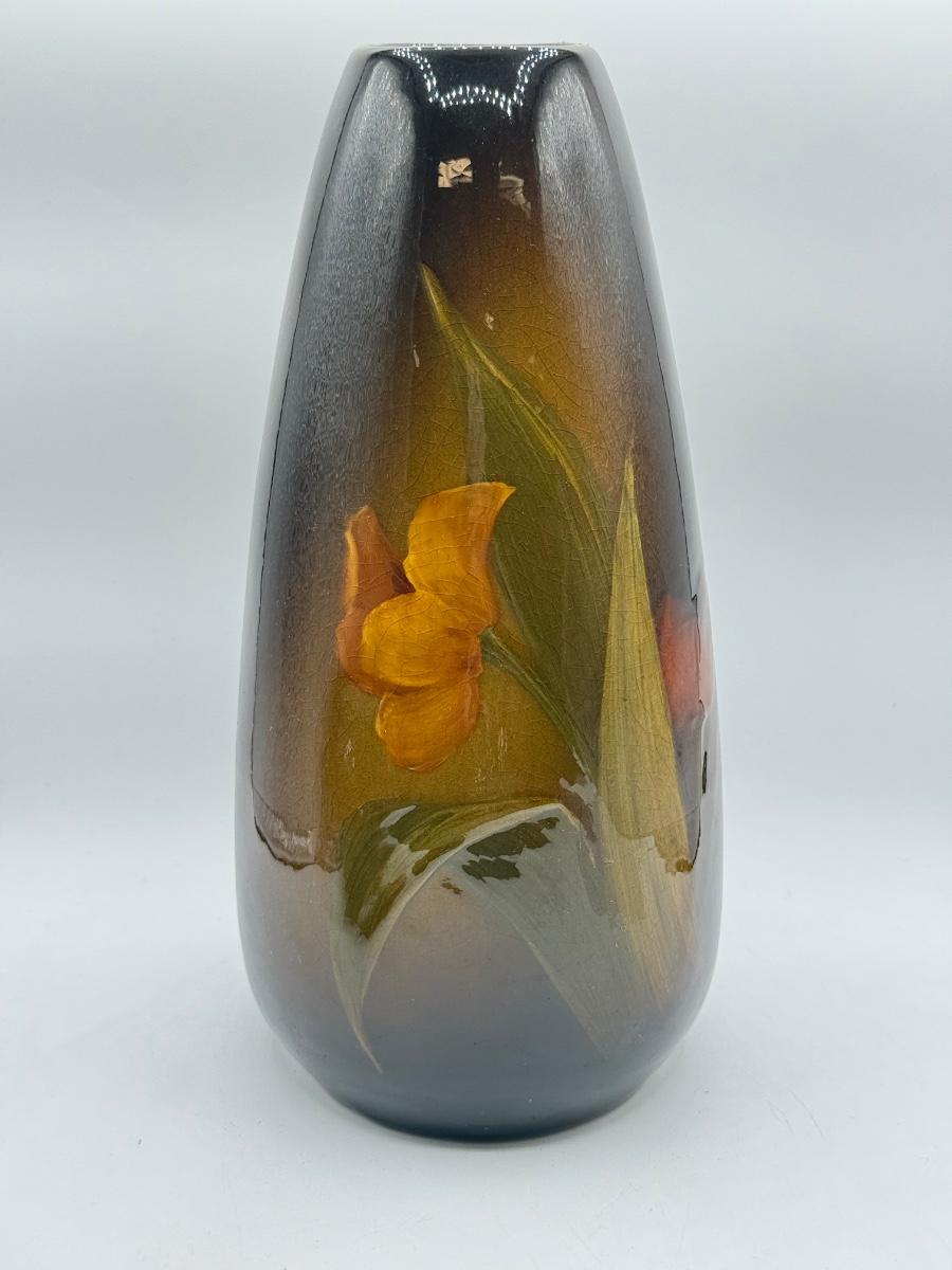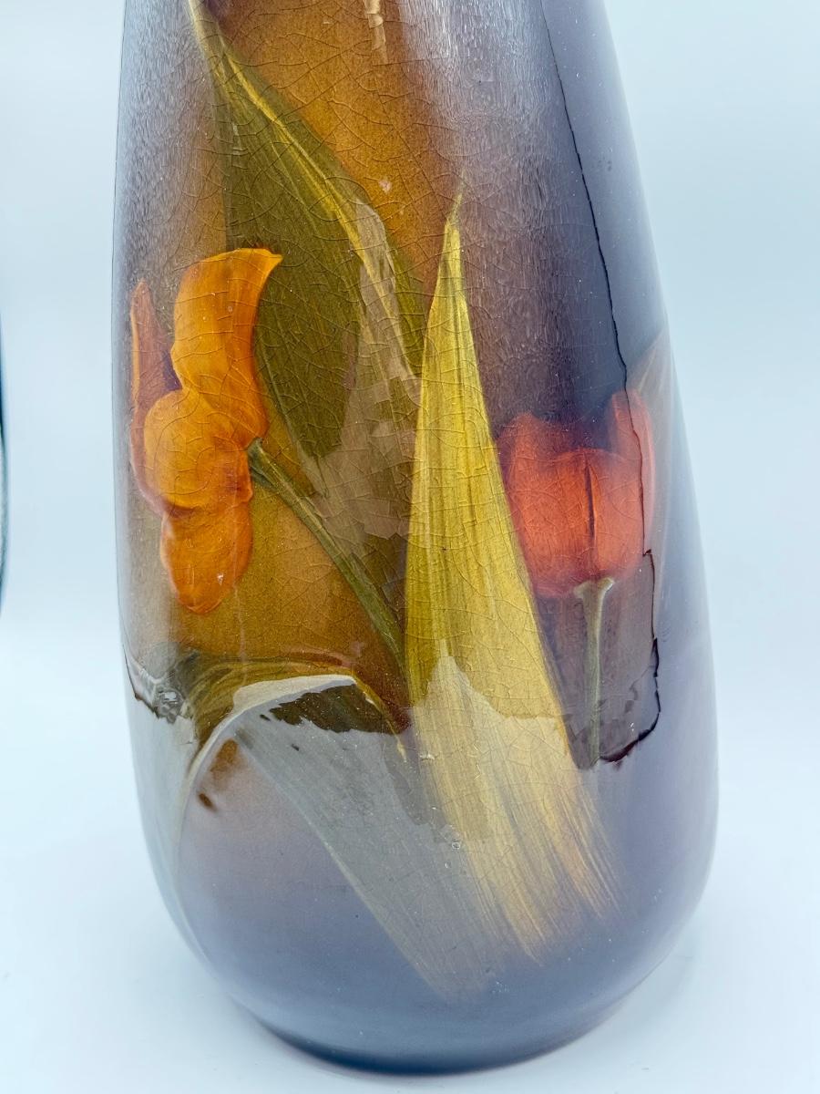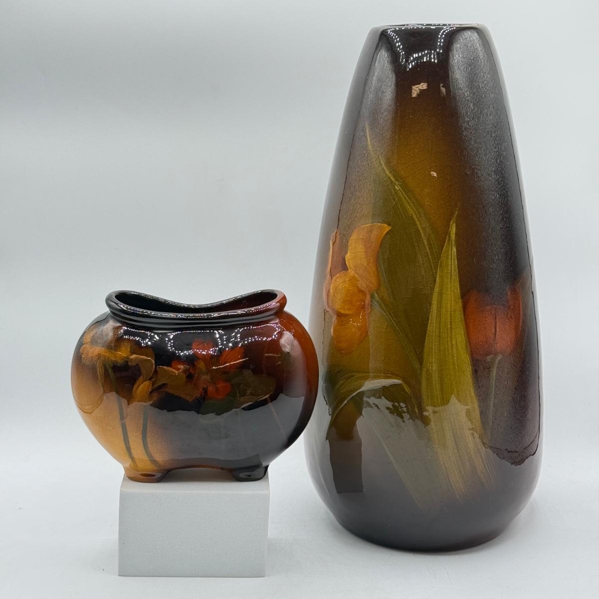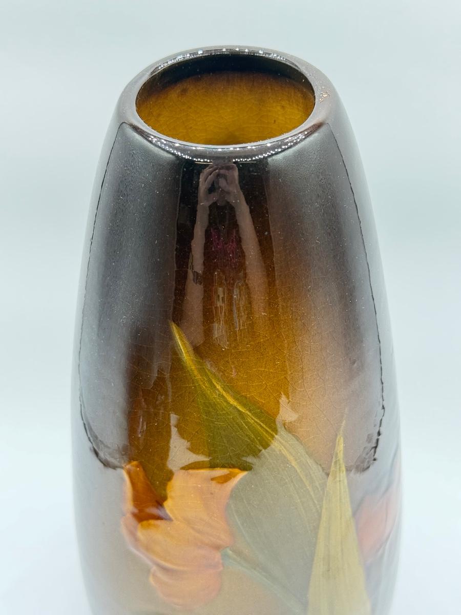 LOT 7: Brown Tone Floral High Gloss Vases Marked Ouwelsa Miller & ALS13