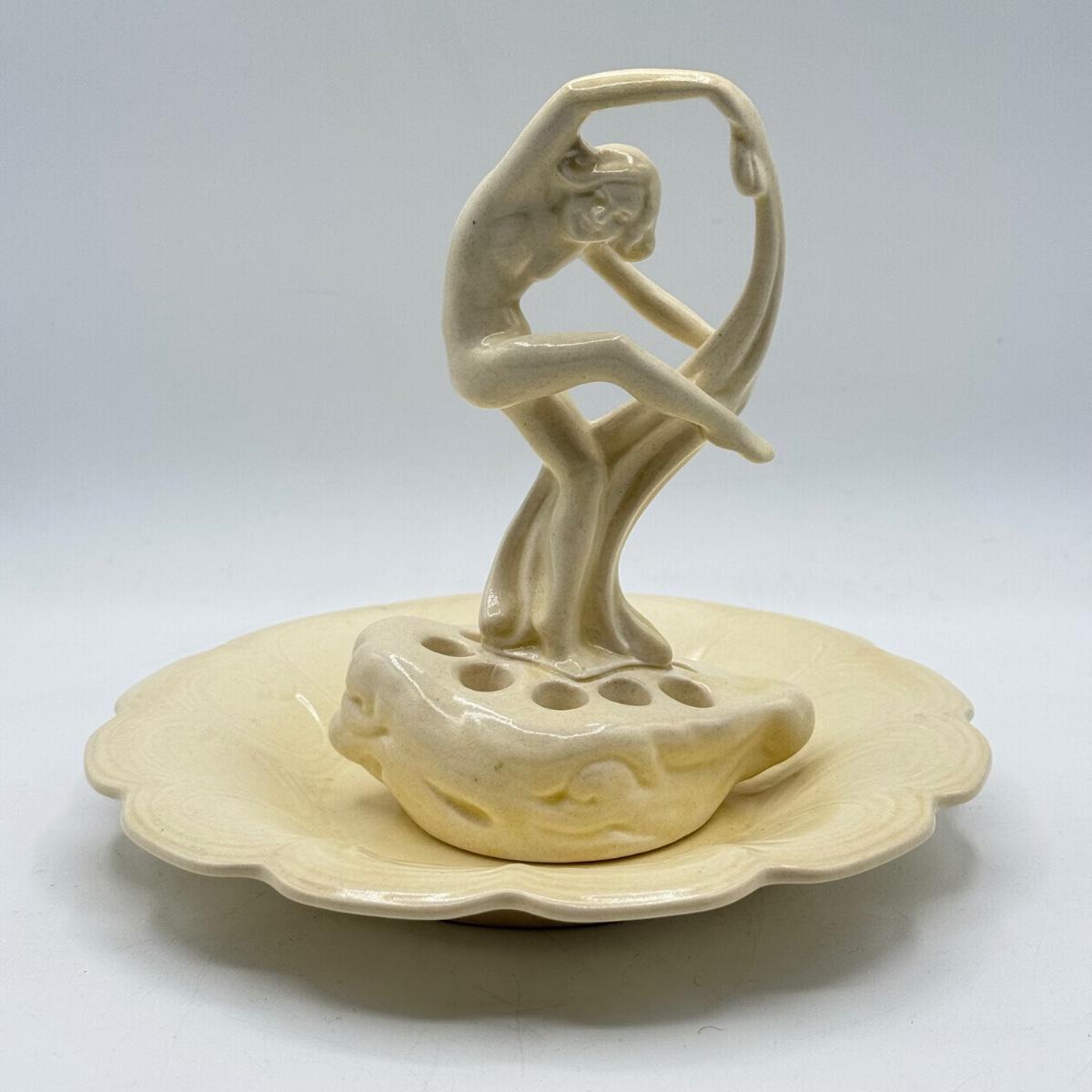 LOT 20: Cowan Pottery Sculptural Woman Flower Frog & Plate