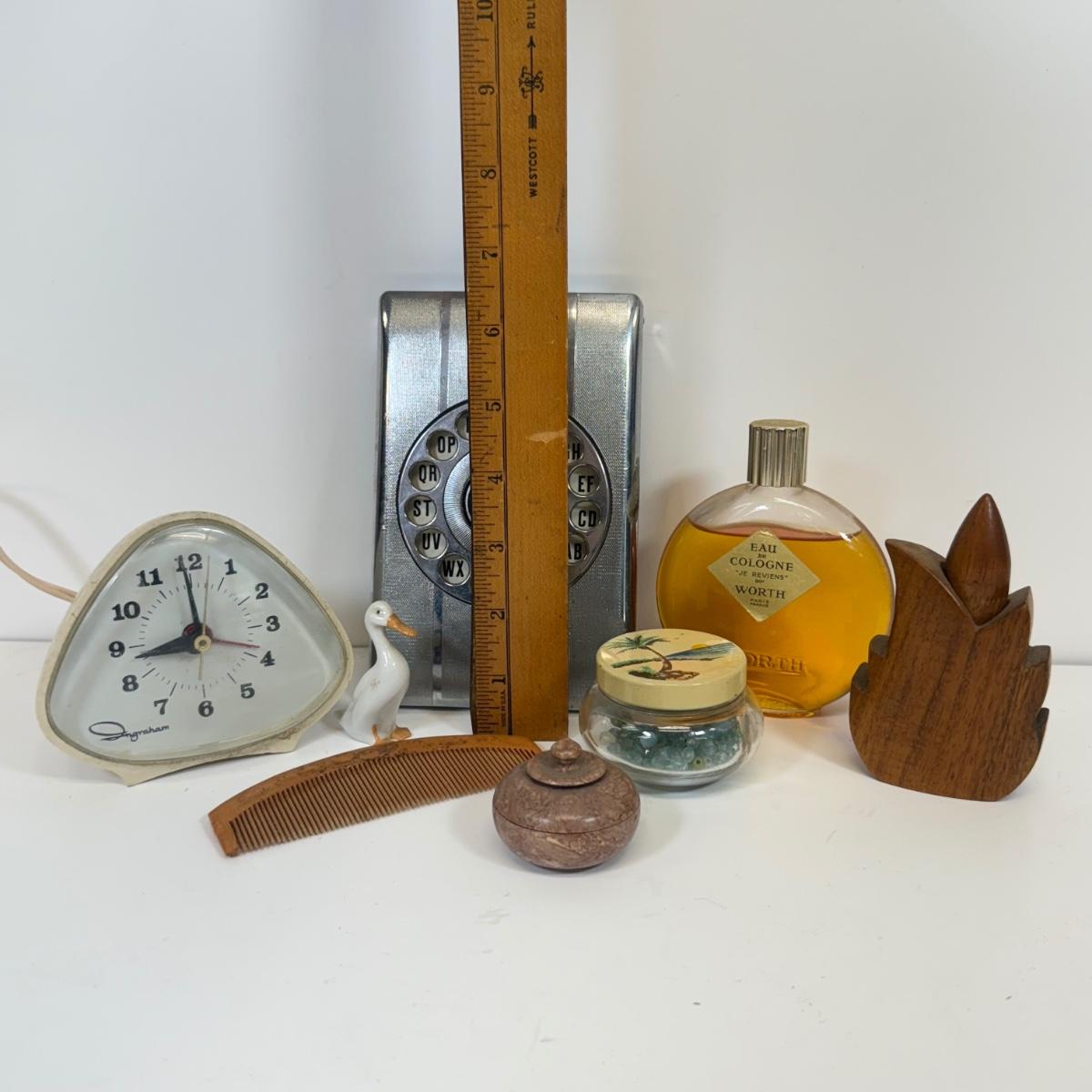 LOT 36: Vintage Rolodex, Worth Eau de Cologne, MCM Ingraham Electric Clock & More