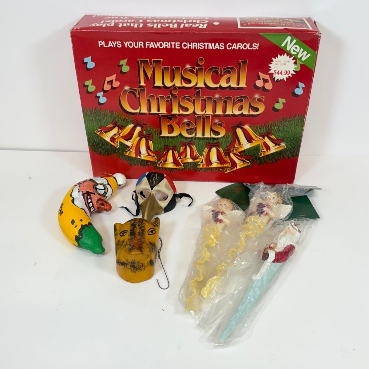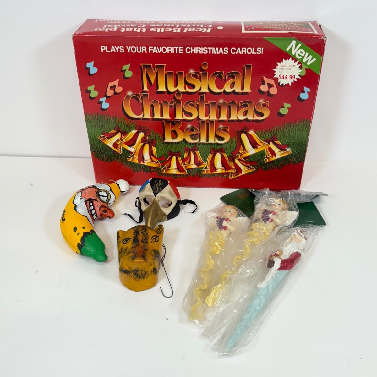 LOT 37: Musical Christmas Bells in Box & Christmas Tree Ornaments