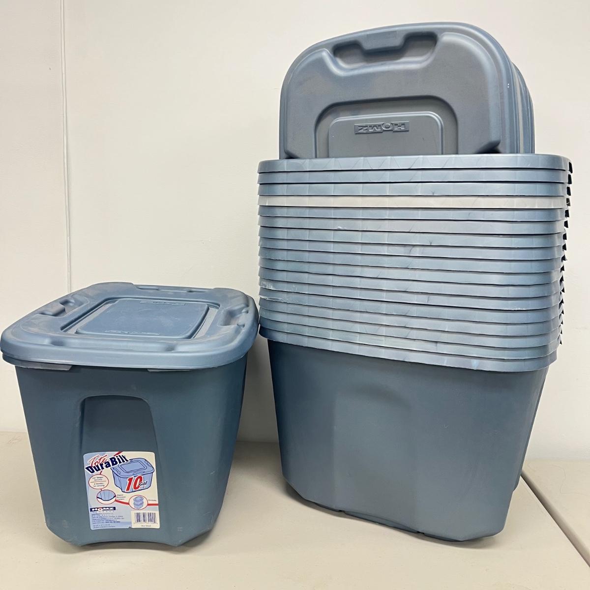 LOT 66: DuraBilt Homz 10 Gallon Storage Totes - Lot of 18 Used Containers