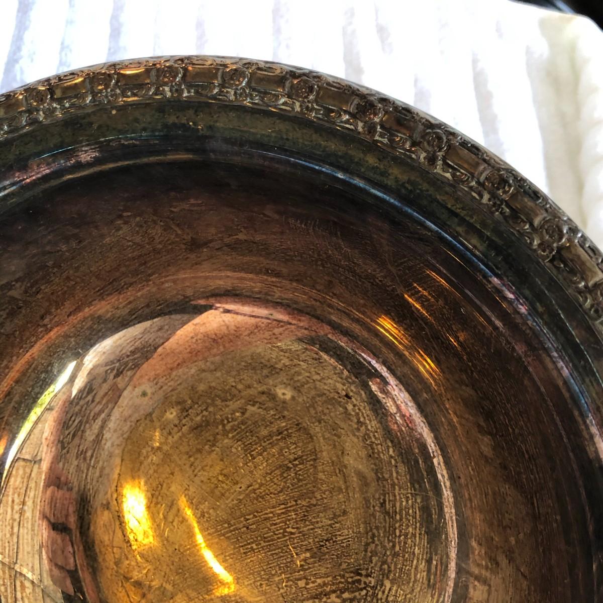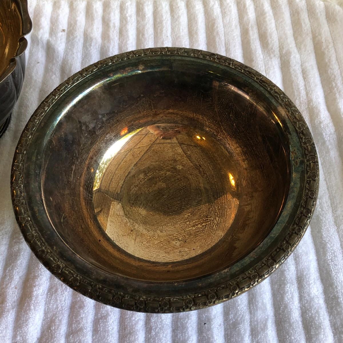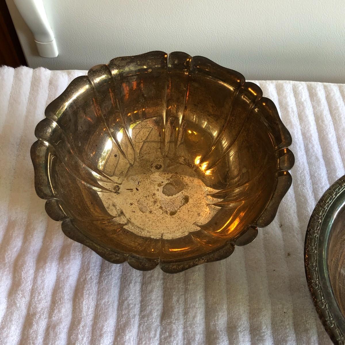 Both look like they just need a good polishing. The one has a sticker identifying it as International Silverplate.