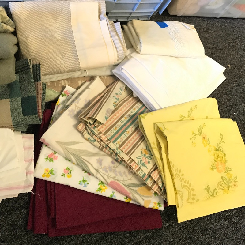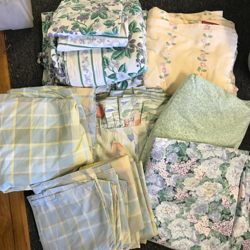 Our final collection of sheets and pillowcases. Once again, newer and vintage patterns emerge, this time they are organized in a bin labeled King. We’ve thrown in a plethora of pillow cases to suit your every mood. Sheets appear to be in order, clean and blemish free, but Sterling Transitions has not fully verified contents. Storage bin is not included. See images. Local Pickup Only.