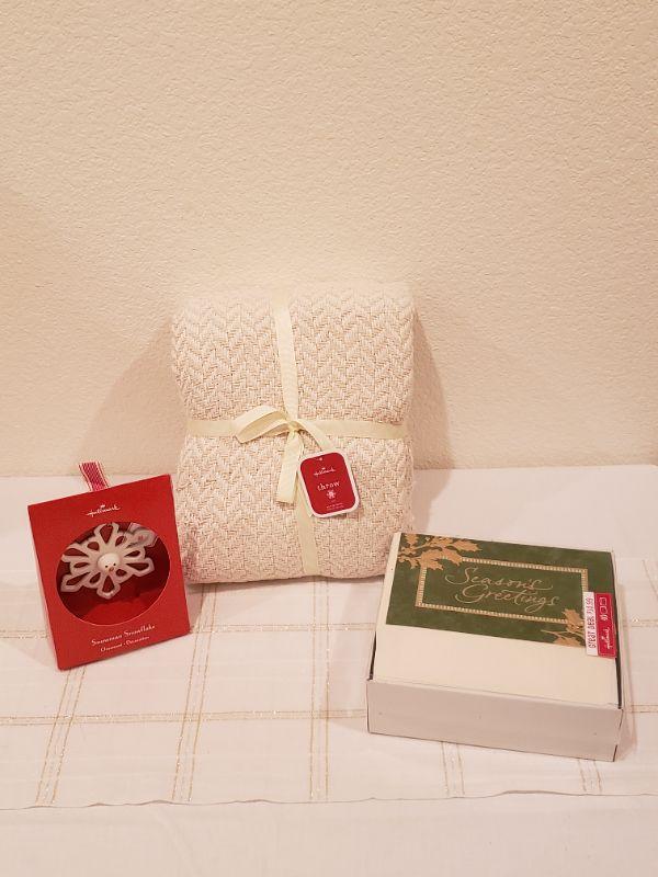 Lot 117:  New Hallmark Throw Blanket, Christmas Cards & Snowman Ornament