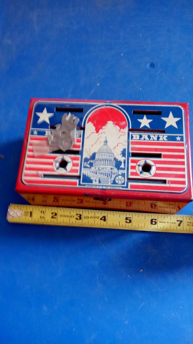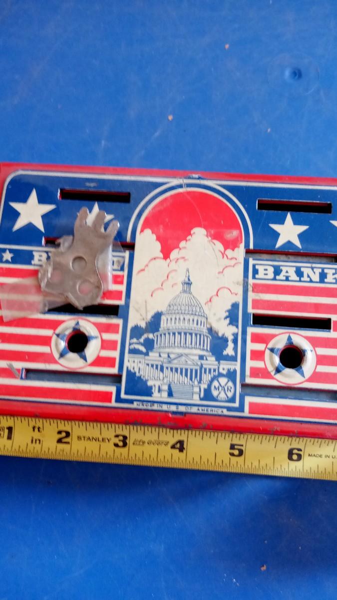 LOT 117 OLD METAL COIN BANK WITH KEY