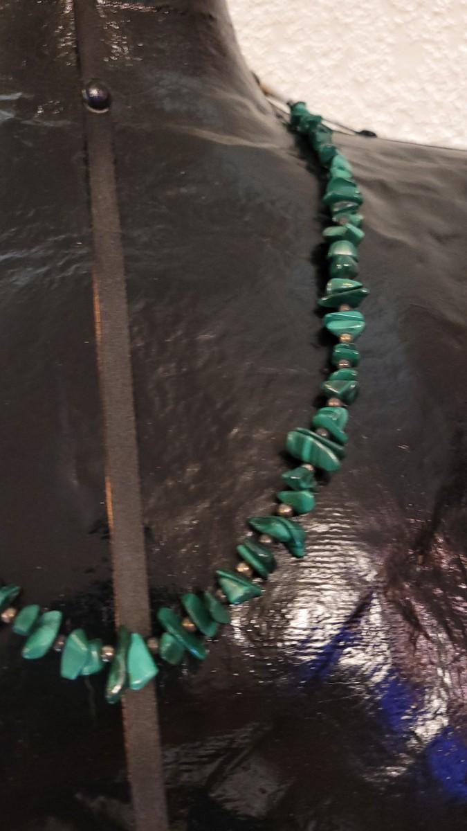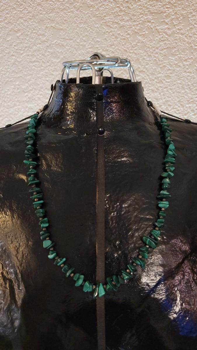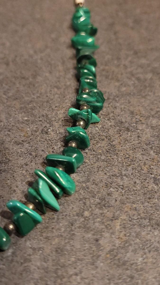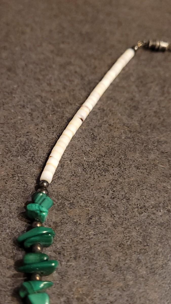Lot 117: (26") Heishi, Silver and Malachite Necklace