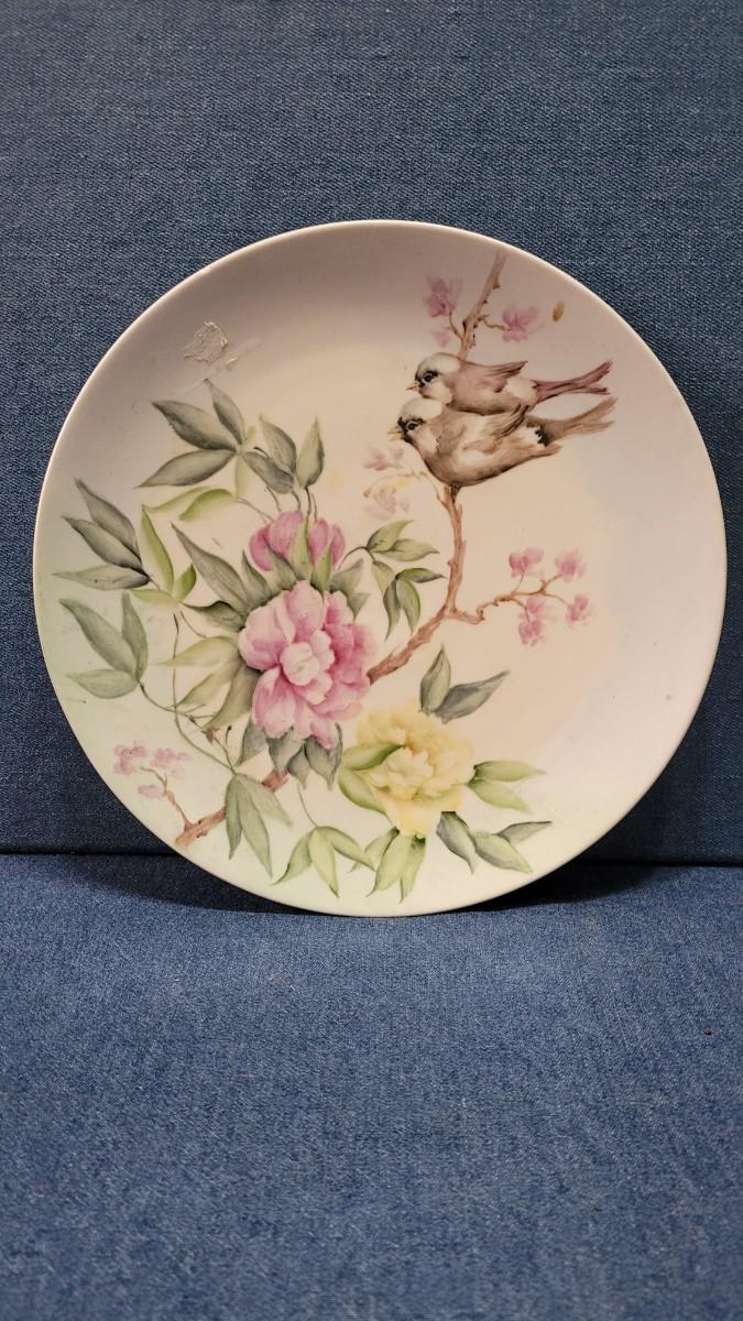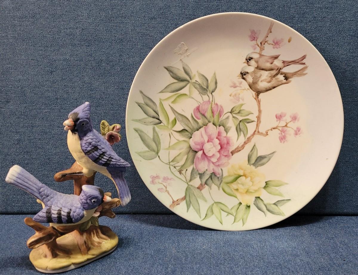 Lot 117: Vintage Handpainted Alka Kunst Bird Plate and Porcelain Blue Jays