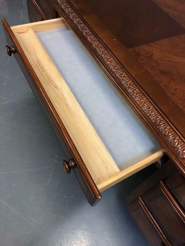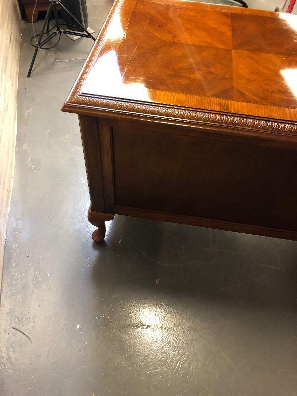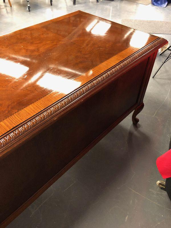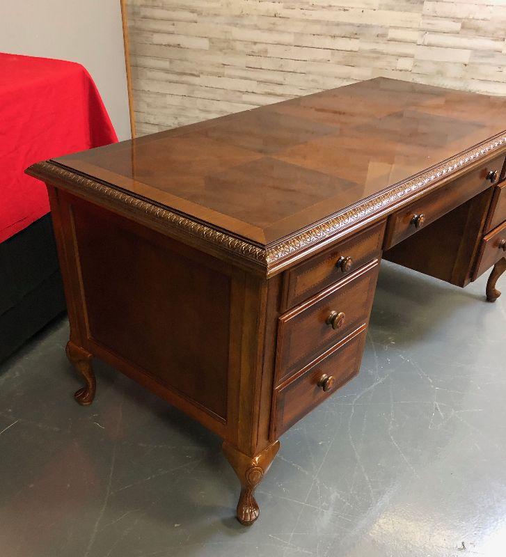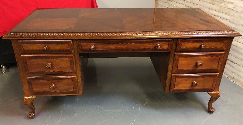Beautiful Inlay Office Desk - Finished all sides - 7 drawers Excellent shape 30"x65" by 31" tall