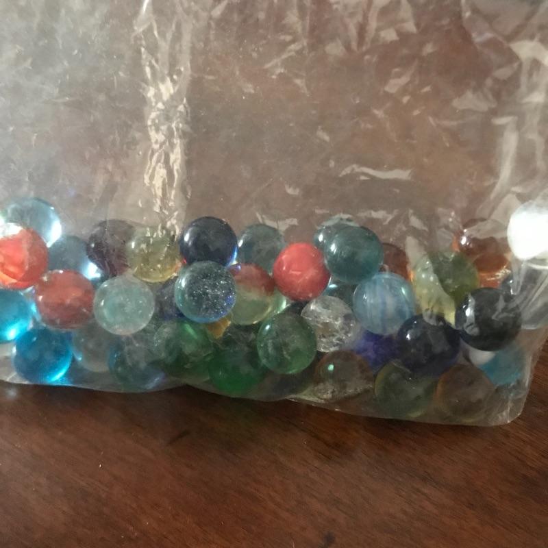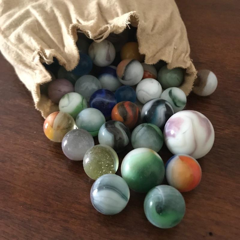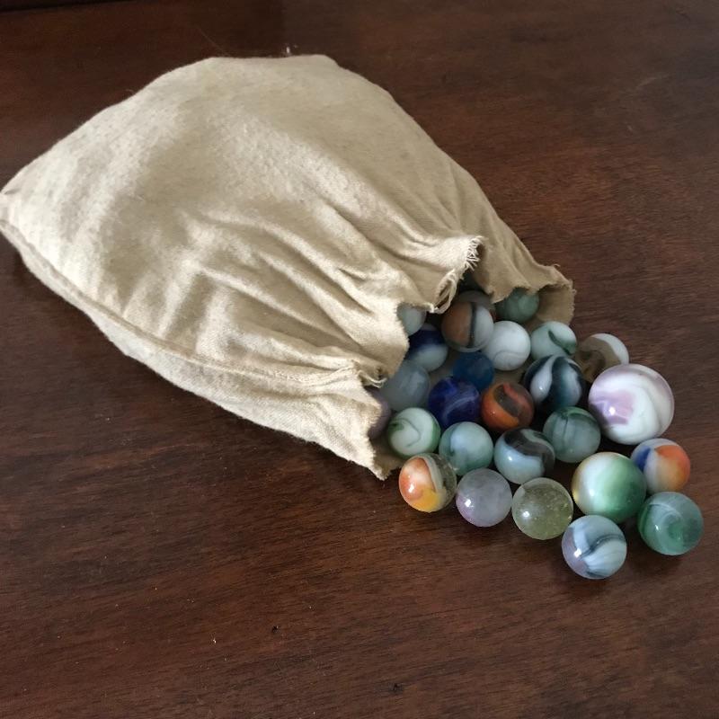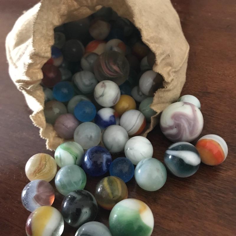 Childhood memories galore! Lot includes two sets of marbles, the marbles in the cloth bag appear to be vintage. See pics. Shipping available.