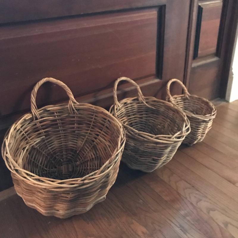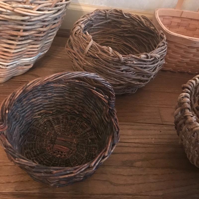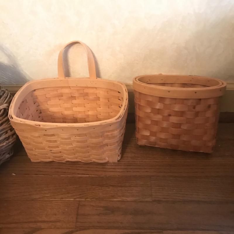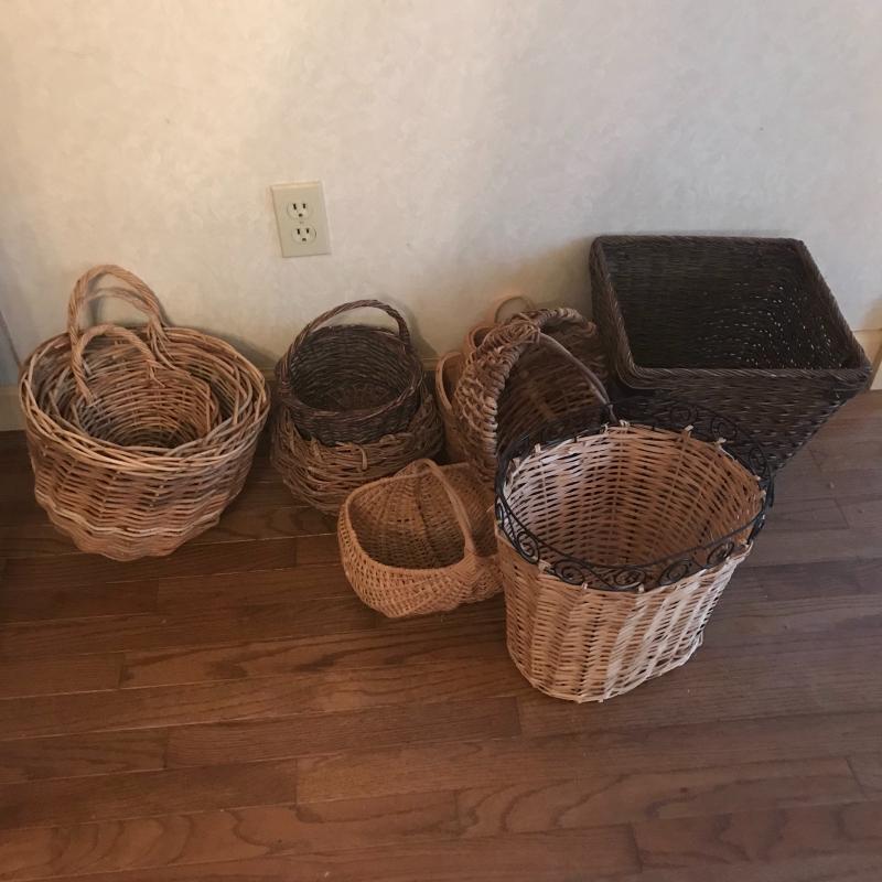 2 waste baskets, set of three wall hanging baskets, and misc. others of different shapes and sizes. All in good to great condition. This lot is available for shipping or local pick up in Flat Rock, NC.