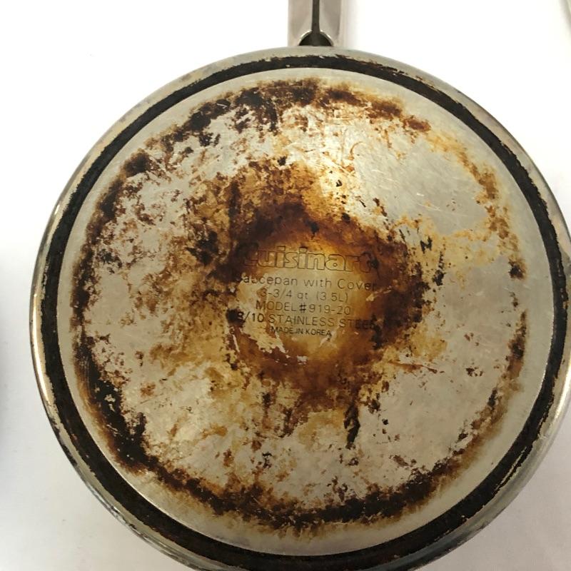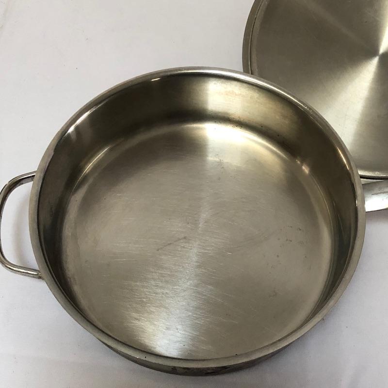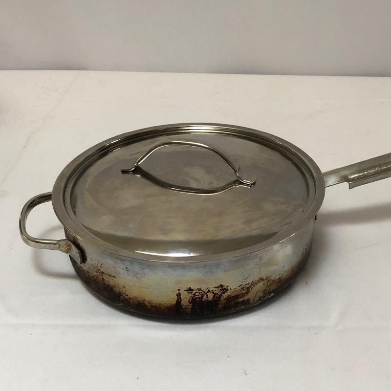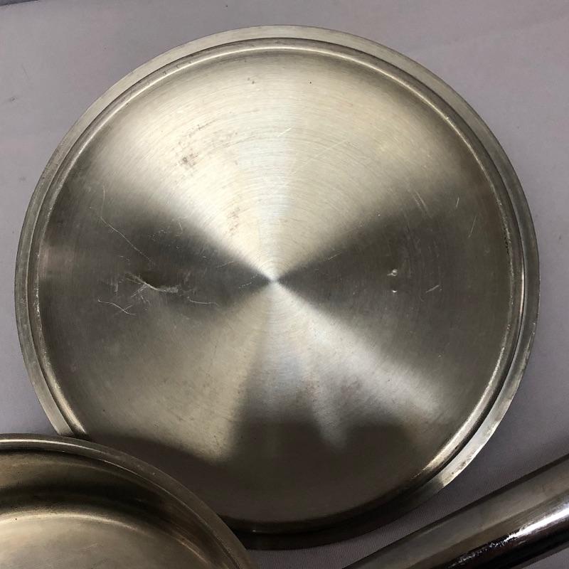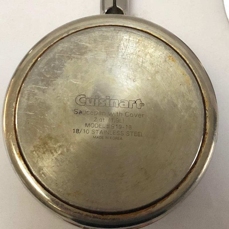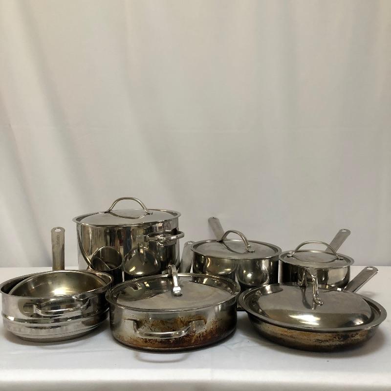 The gift that keeps on giving with food that feeds your soul year after beautiful year! With the exception of the small frying pan each piece has its own lid. This set of Cuisinart pots and pans has already been gently used and seasoned for you. Bottoms are worn but insides are good. See photos.
