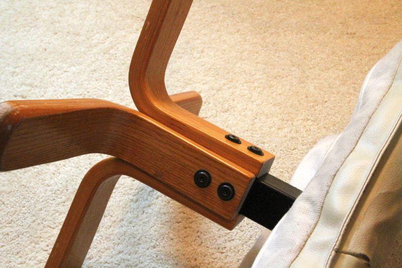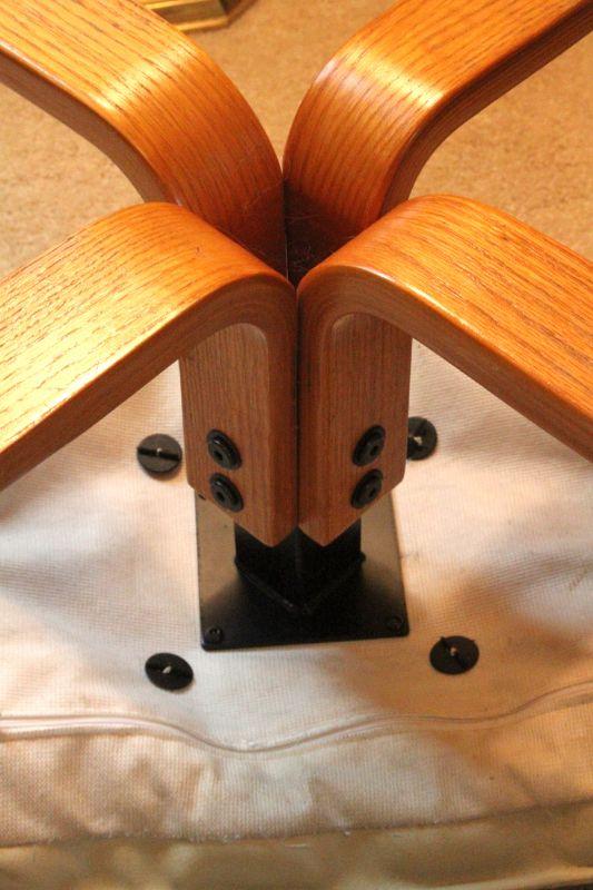 Reproduction mid century look lounge chair and ottoman set with a Danish style bentwood base. Manufacturer unknown