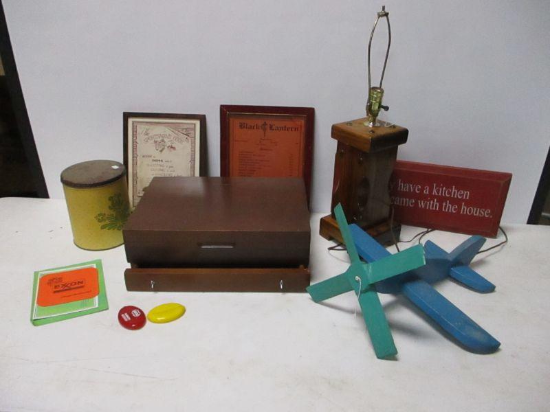 Lot 117 - Decorative Home Decor Items - Storage Box, Lamp & Advertising Items