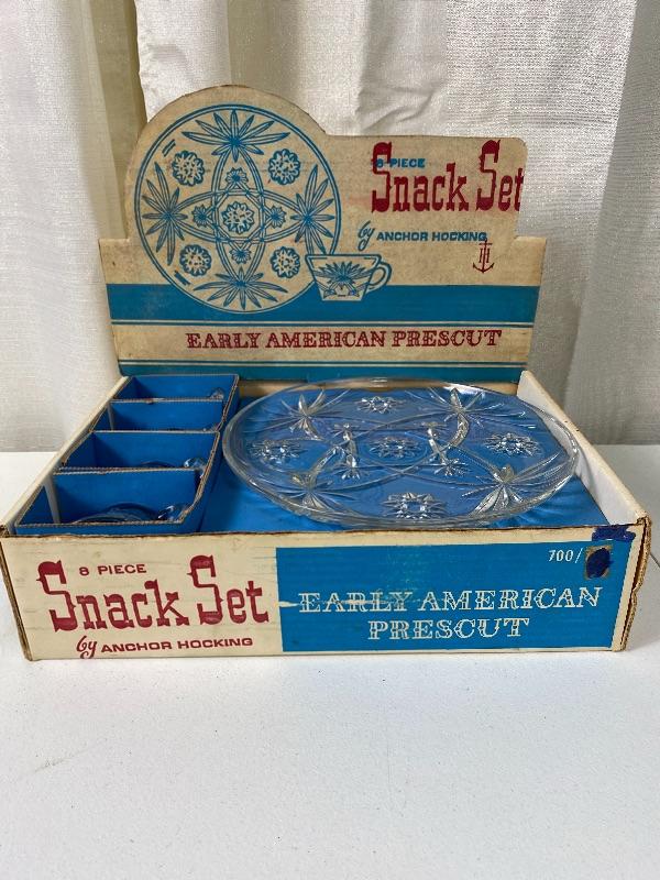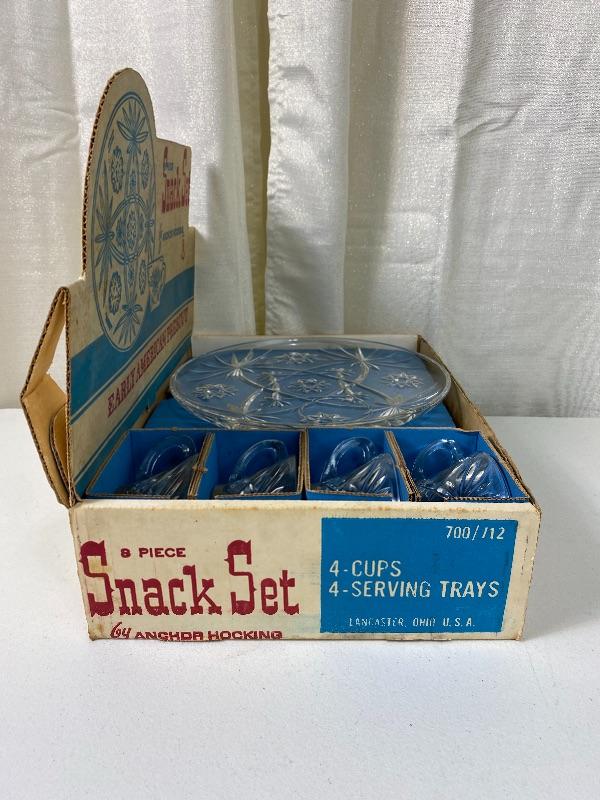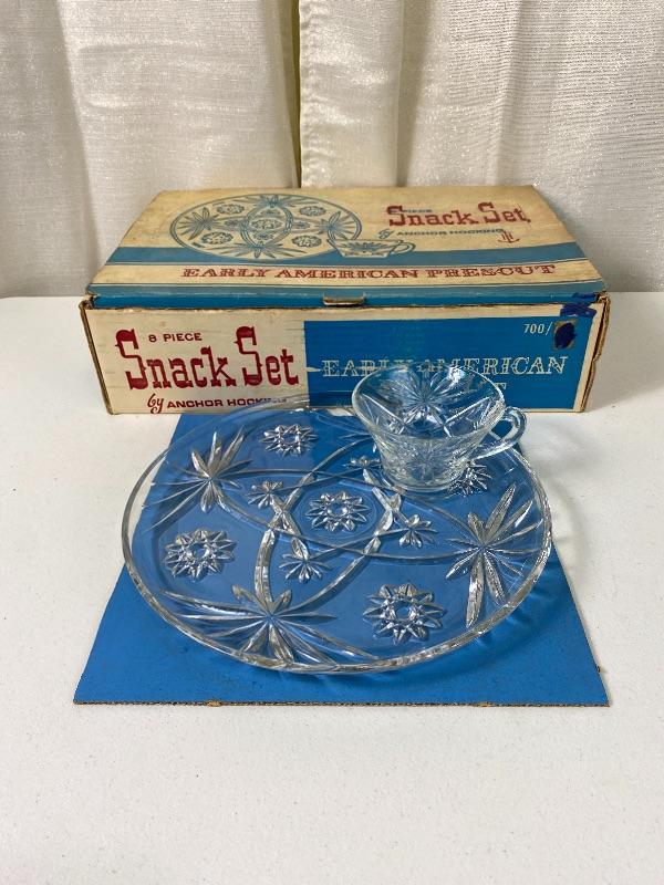 Lot # 117 S Early American Prescut Anchor Hocking 8 Piece Snack Set