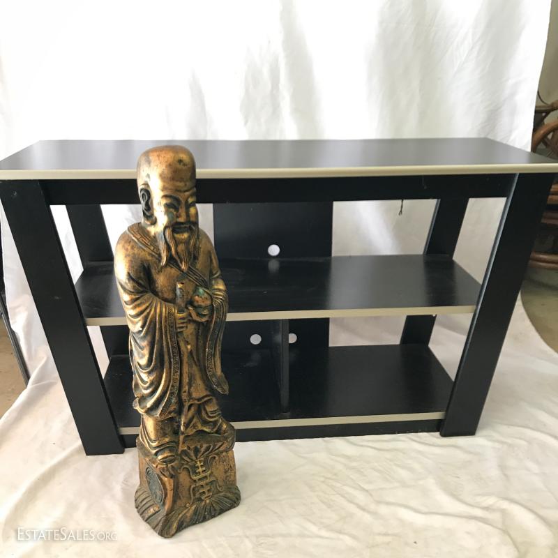 Lot 117 - Entertainment Shelf and Wood Statue