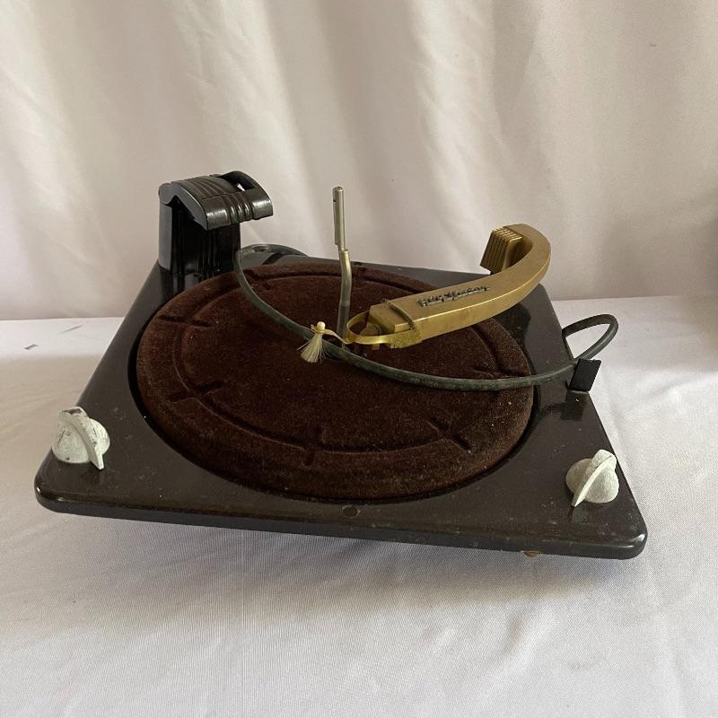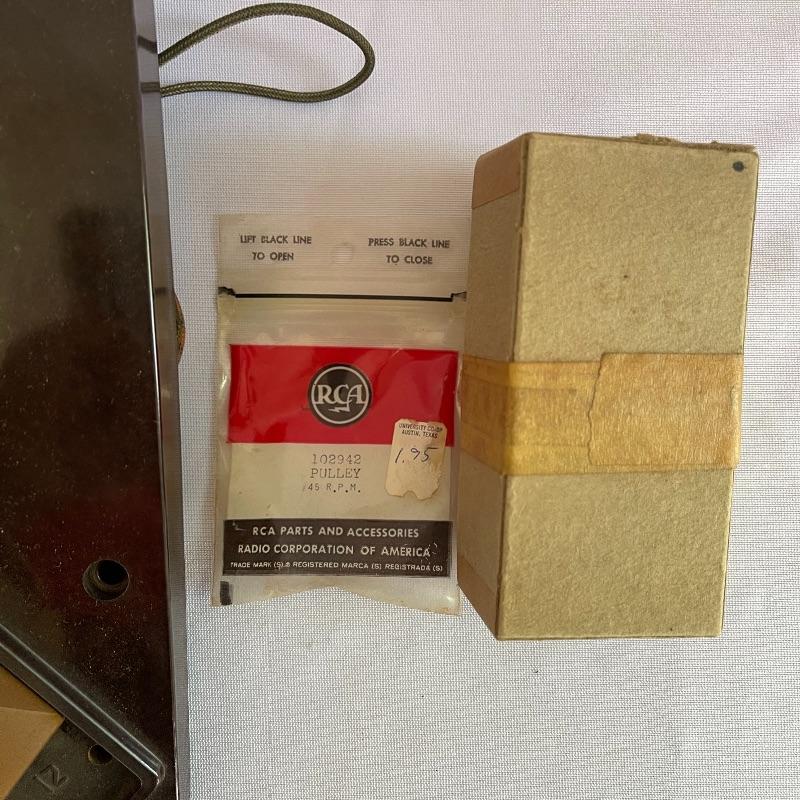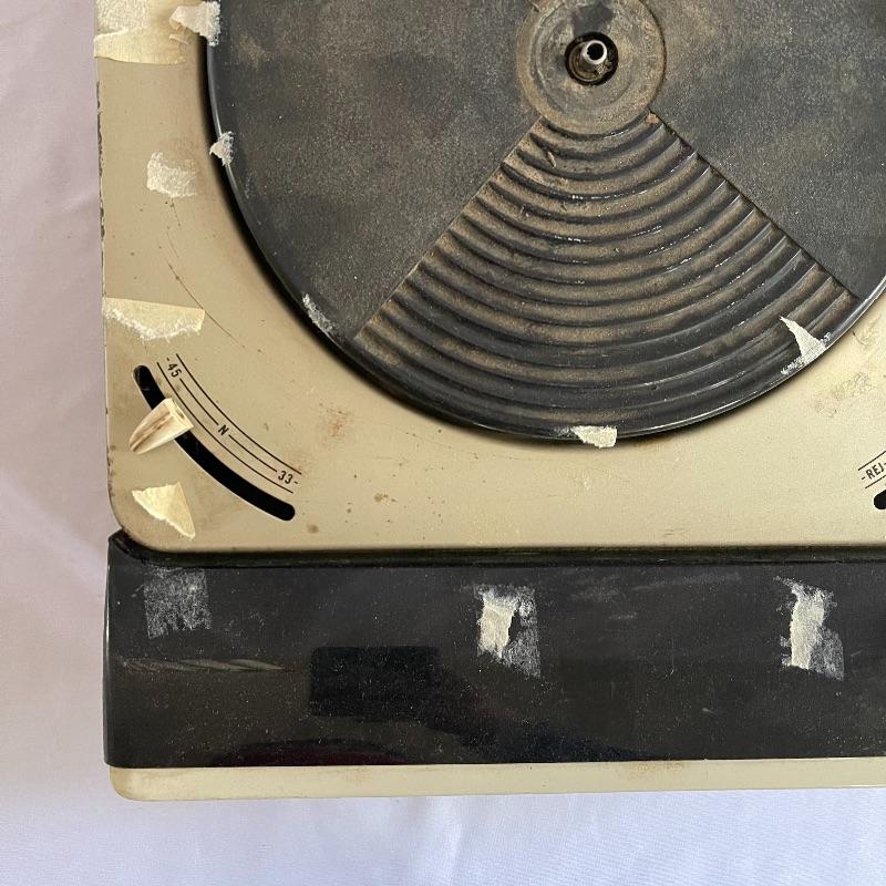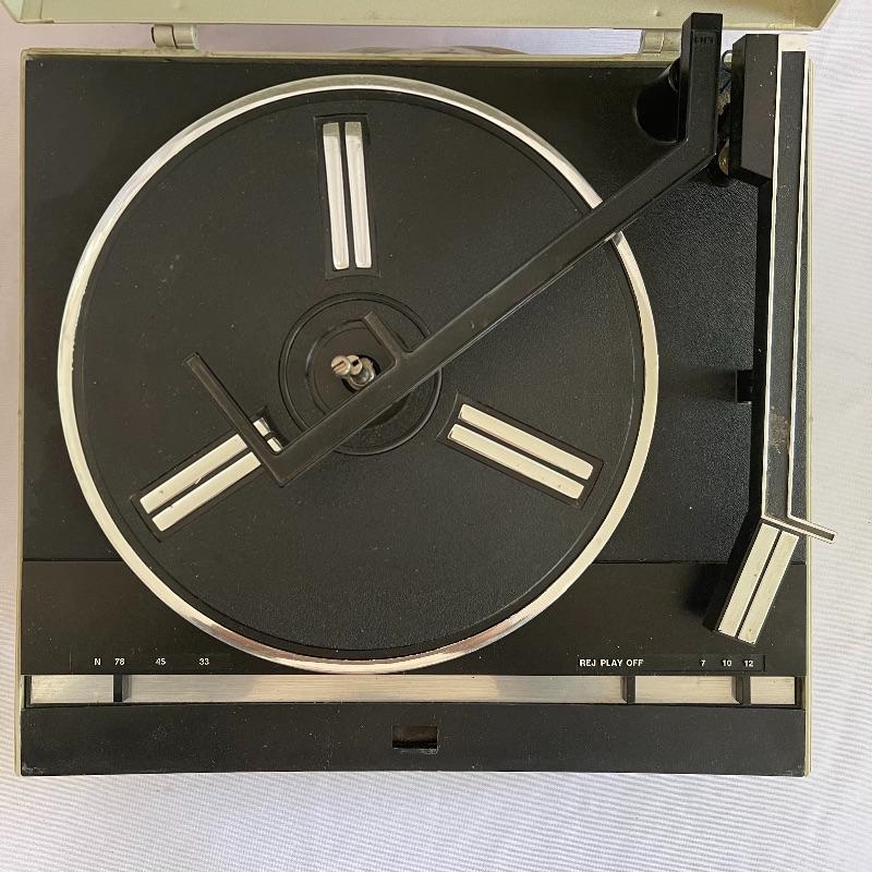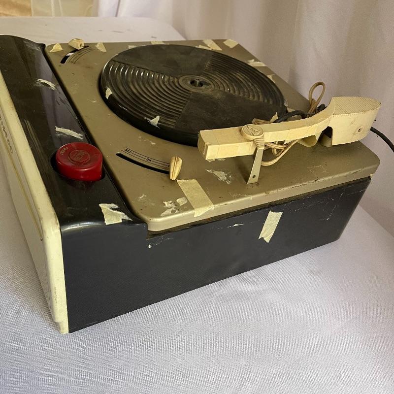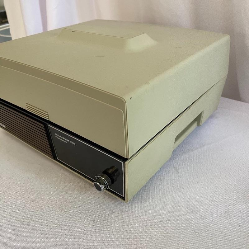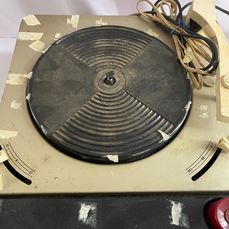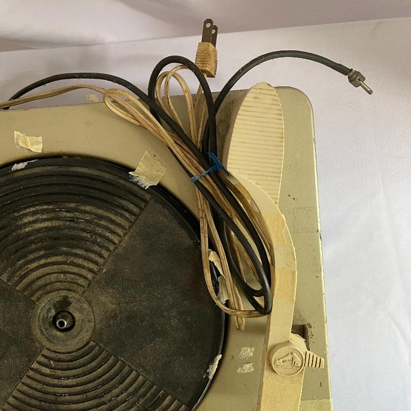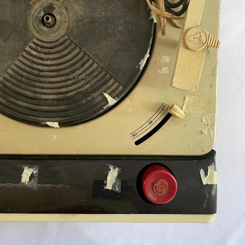 Four various RCA turntables. The first is an RCA Victor with model number 9-JD-1DE and did not power on. The second, an advanced solid state phonograph with model year of 1974 and model number of 31624831 and powered on when tested. The third is a victor with the numbers 960282-1, S274, and 021 on the underside. The last turntable is also a victor with hard to read numbers stamped on the underside. The last two were not tested.