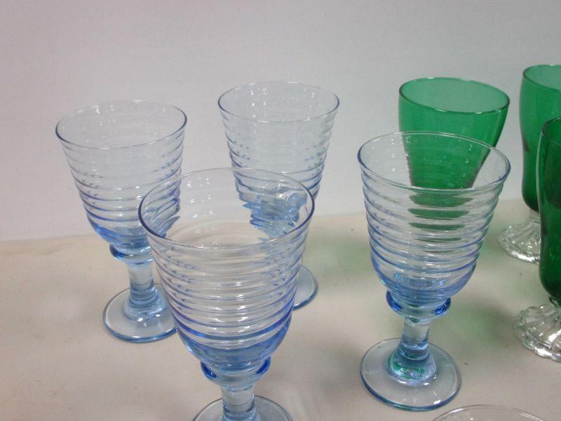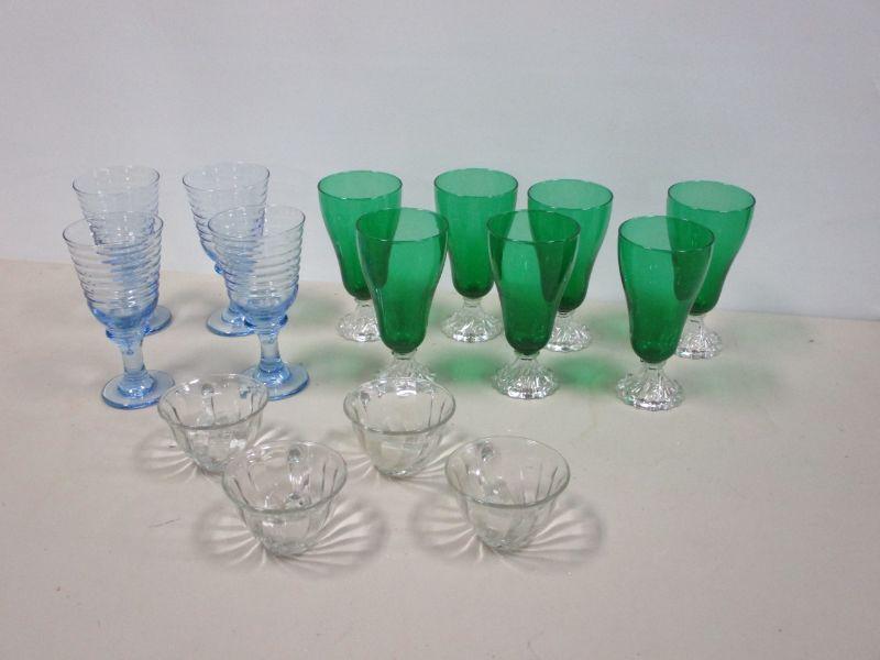 Lot 117 - Glasses - Blue - Green & Clear - Anchor Hocking
