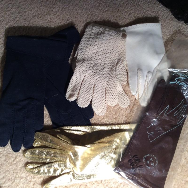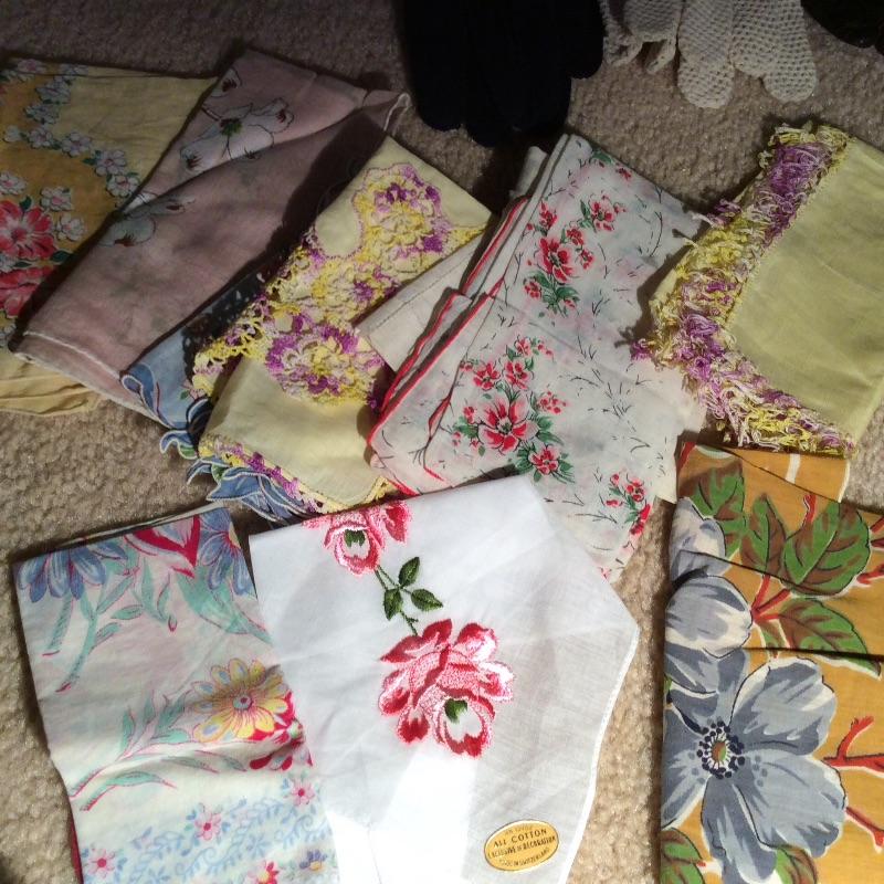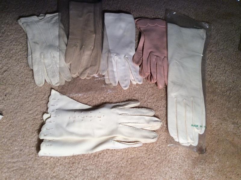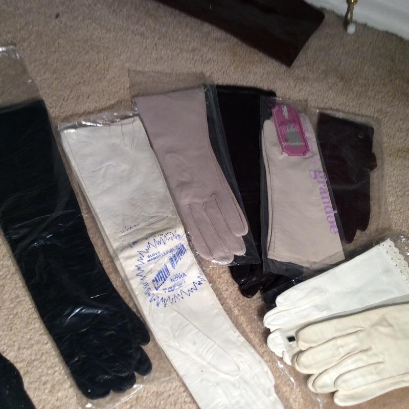 Women’s gloves, short and long. Leather and lace and more. Also, vintage hankies.