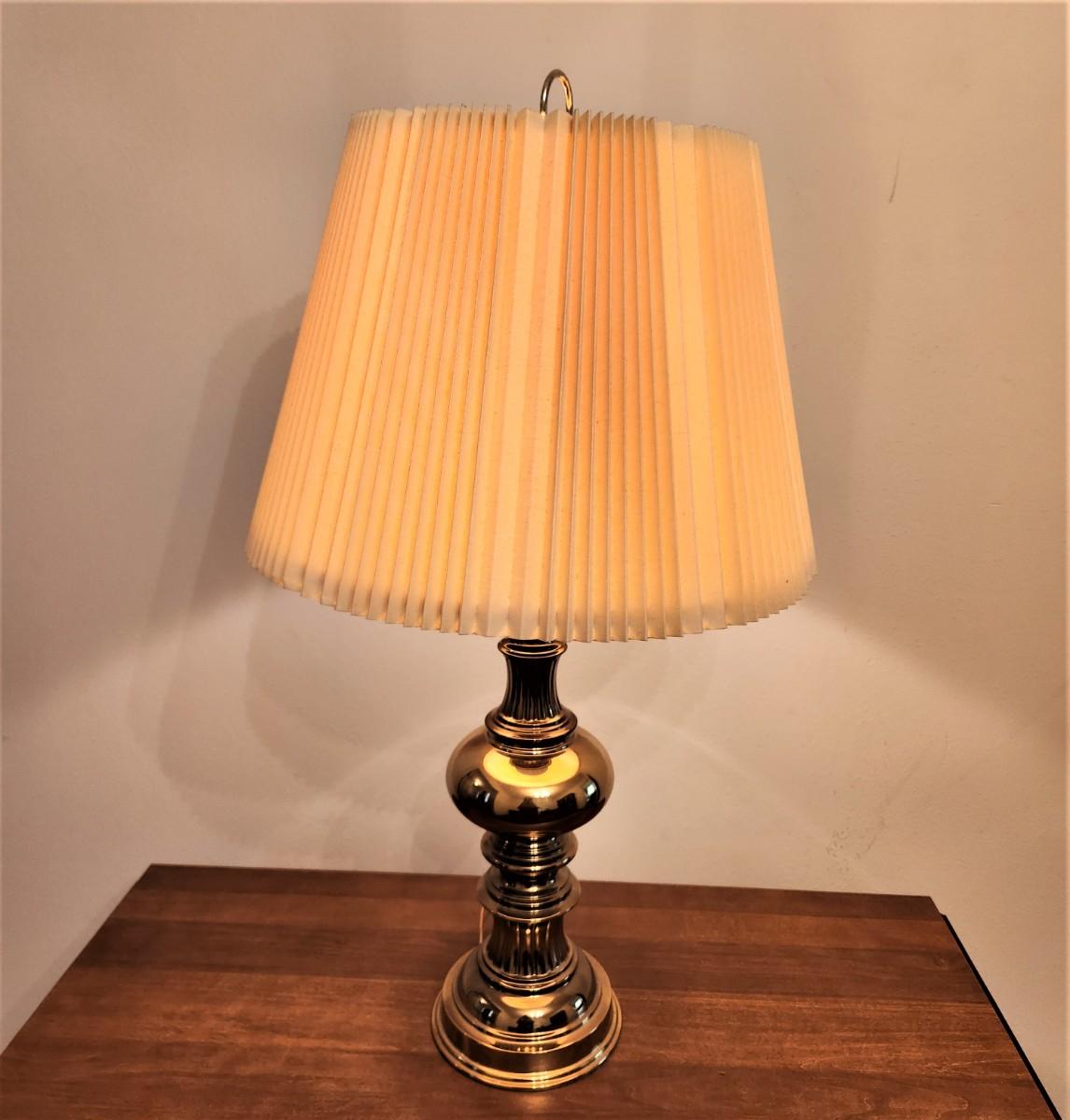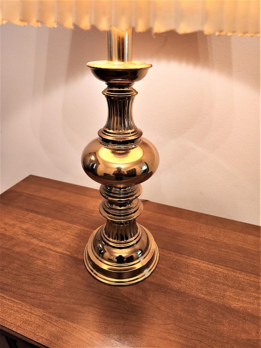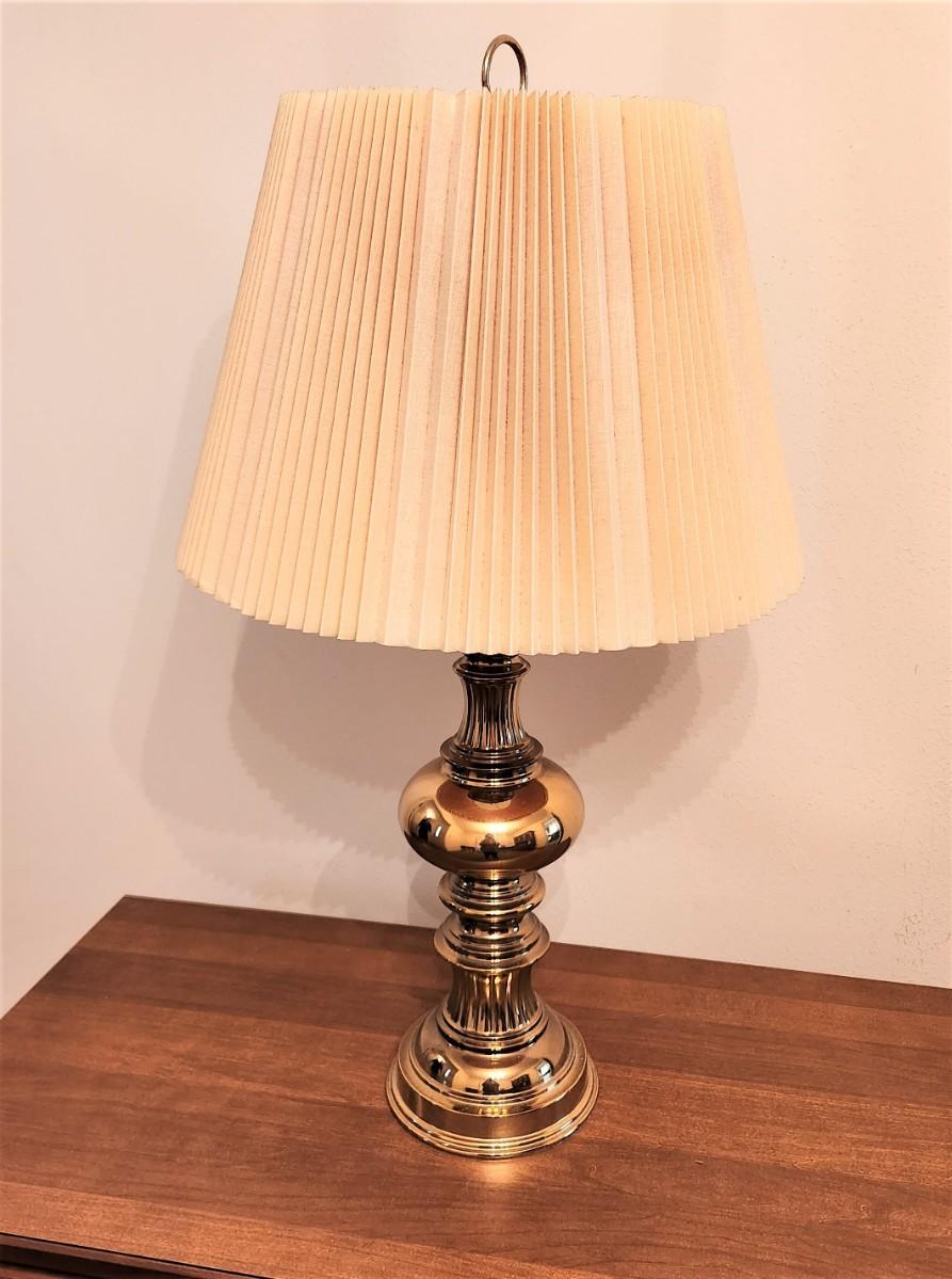 Heavy brass table lamp, classic styling. Works, 31" tall.