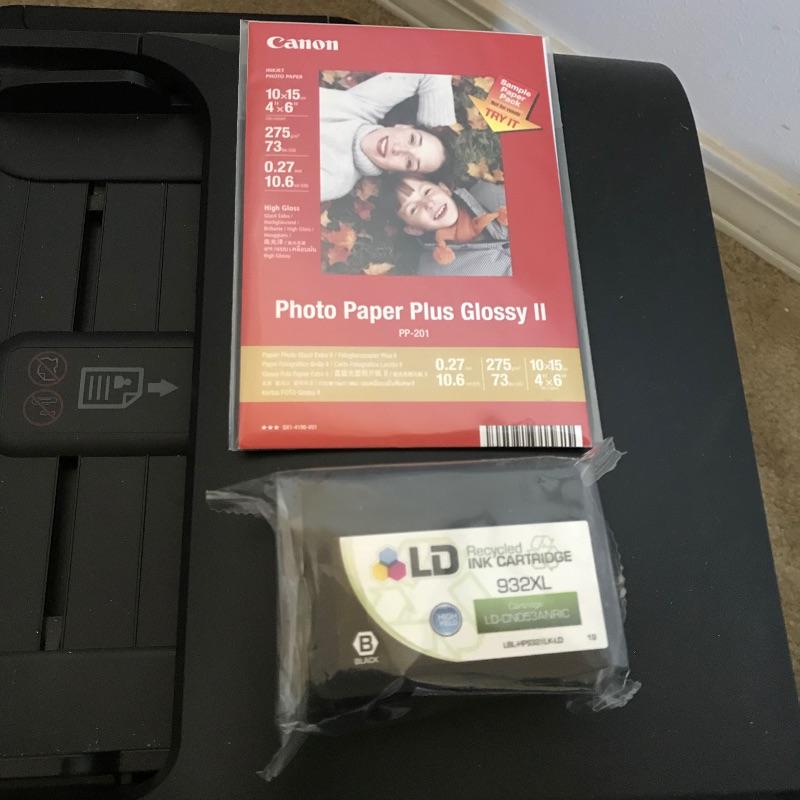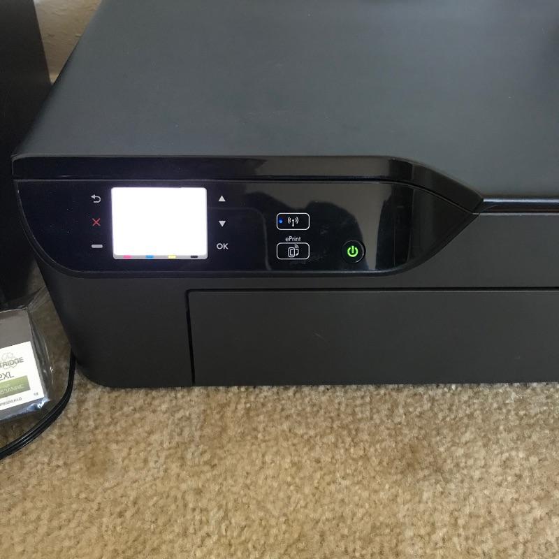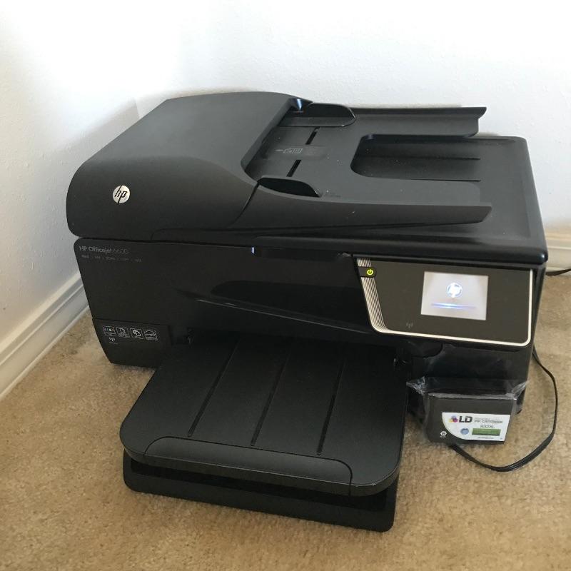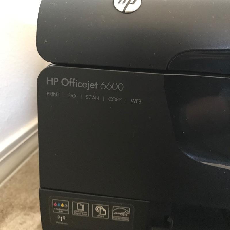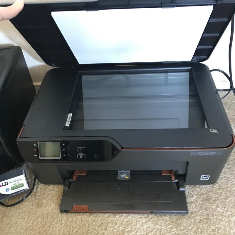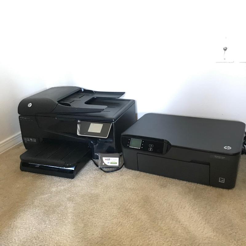 Two HP color printers for your home or business needs. HP Officejet 6600 offers print, scan, fax, copy, web. Printer turns on and menu works. Lot also contains a more compact printer- the Deskjet 3520 with wireless capabilities. An extra black 932XL ink cartridge and a promo pack of photo paper included. See photos.