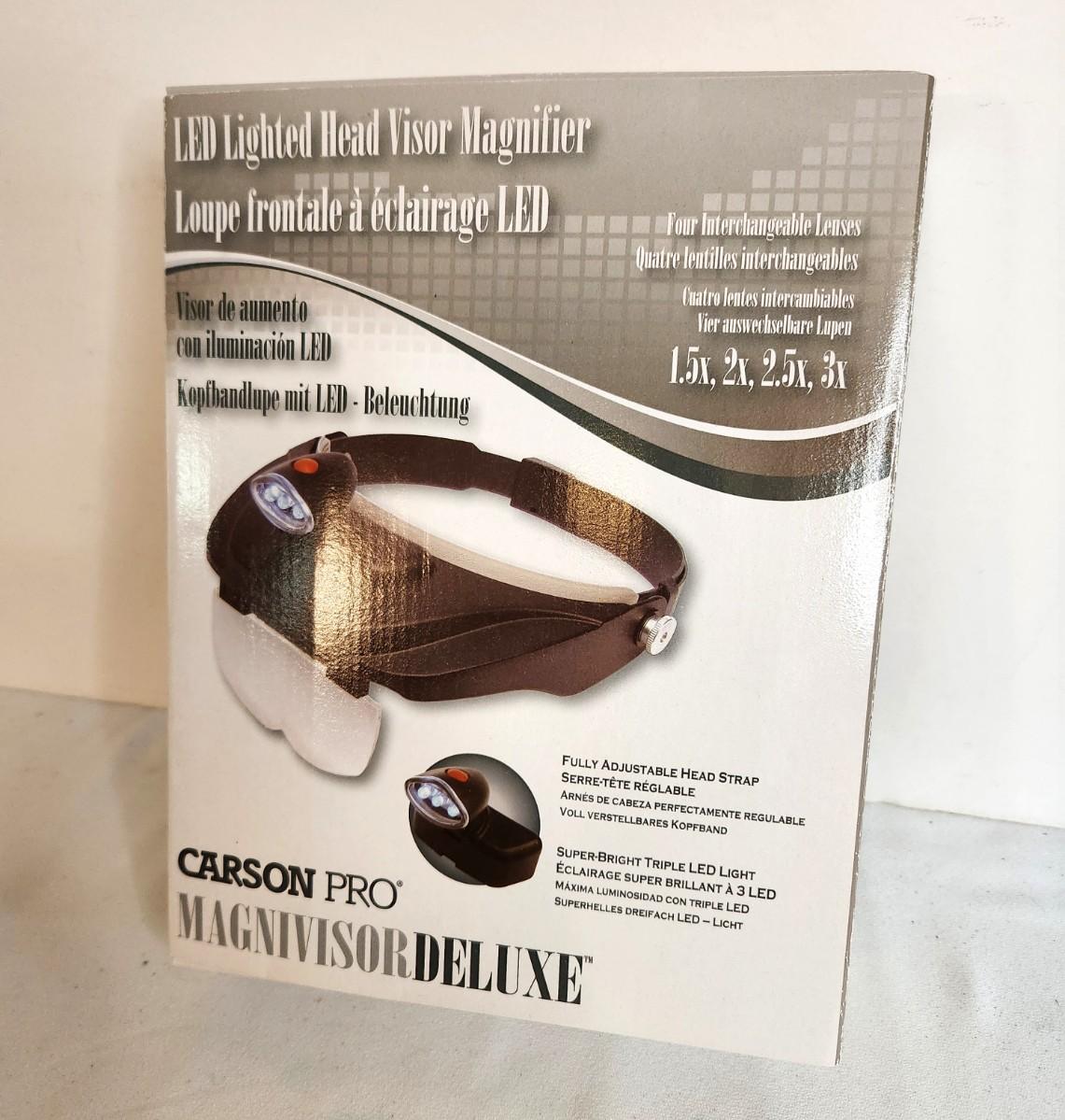 Nice LED Lighted Head Visor magnification set - complete in box - adjustable head strap - magnifies 1.5x - 3x. Perfect for working on jewelry, watches - anything that requires magnification.