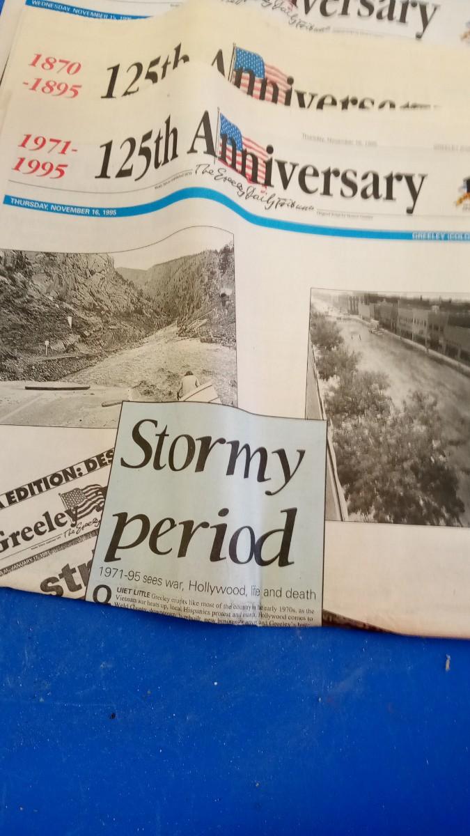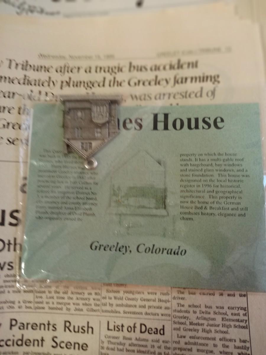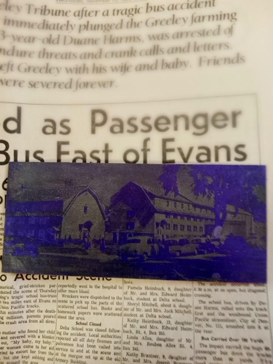 125 TRIBUNE ANNIVERARY OLD CHRISTMAS ORANAMENT FROM GREELEY HISTORIC SOCIETY, OLD POSTCARD DOWNTOWN GREELET, GLASS PICTURE NEGATIVE GREELEY DORMS