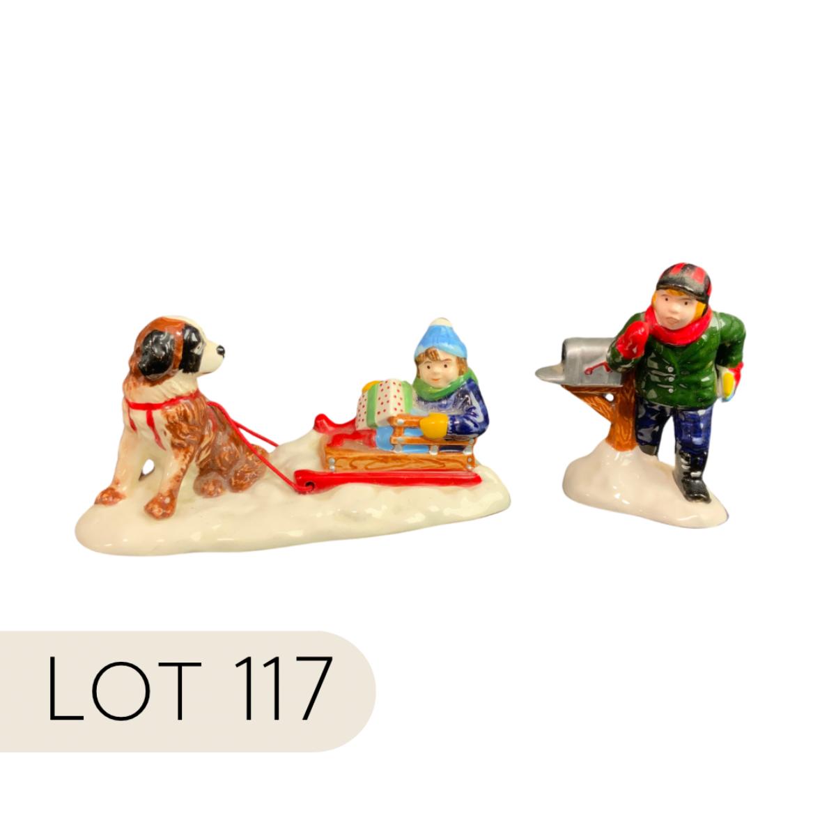 Department 56’s Snow Village really has revolutionized child labor, and now with the help of their best friend these pieces are really going to need to find a home amongst the streets of KatieVille - as I assume you all have named your village. These two are in great used condition, and do need a little cleaning. Please see photos for details and condition. ::: Shipping is available on this lot. If you require shipping you must let us know at the close of the auction. We will coordinate with you after the item has been won. Shipping fees will include insurance up to or exceeding the value of all items being mailed. If you have any questions regarding this lot please contact the auctioneer either via this website, by direct email or by phone. PICK UP TIMES and other important information can be found in the TERMS and DESCRIPTION of the auction. Please take a look for pertinent information. Thanks! Any condition statement is given as a courtesy to a client, is an opinion, and should not be treated as a statement of fact. Reference to condition written, oral or within a condition report shall not be regarded as a full account of condition and may not include all defects, alterations, or restorations. Absence of a condition report does not imply a lot is flawless or lacking imperfections or damage. Katherine’s Auction & Appraisal Service shall have no responsibility for any error or omission. Returns shall not be accepted on the basis of condition.