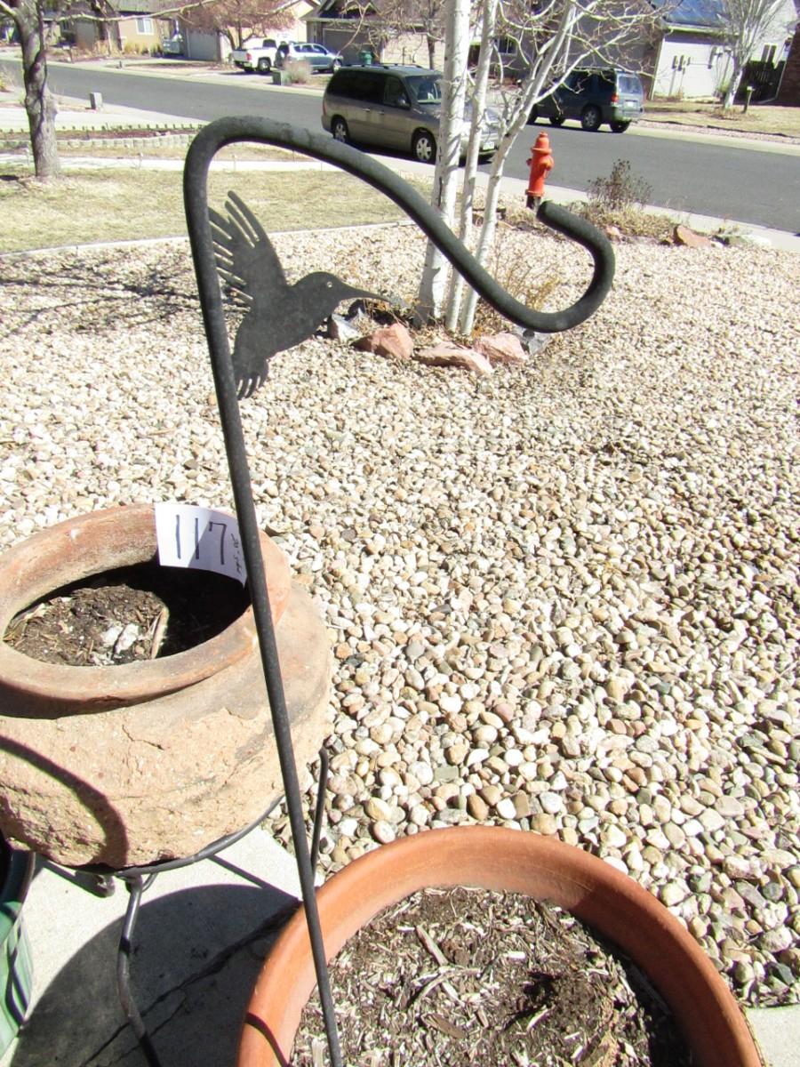 LOT 117, OUTDOOR PLANTERS AND SHEPHERDS HOOK