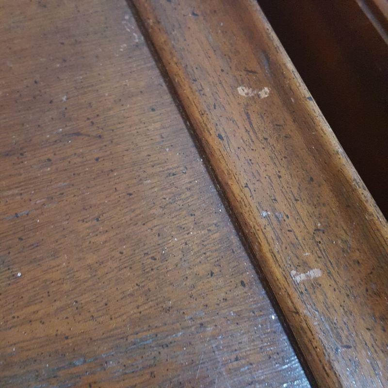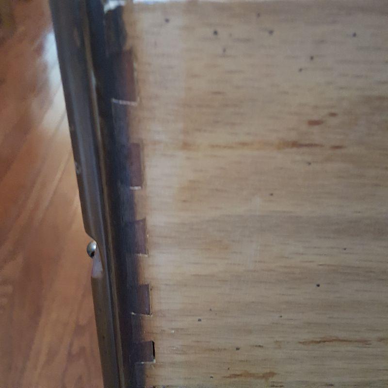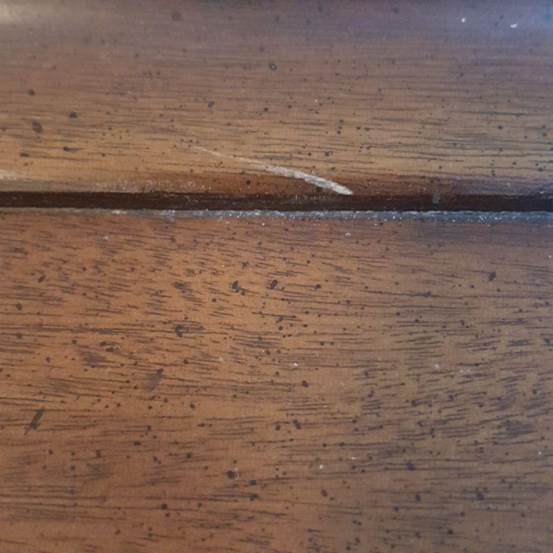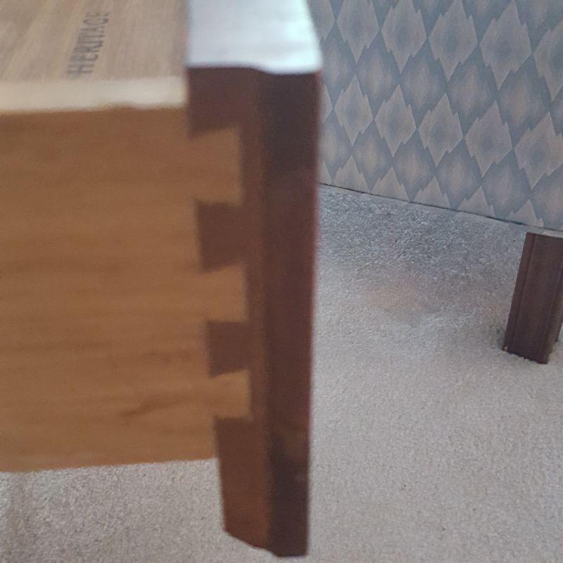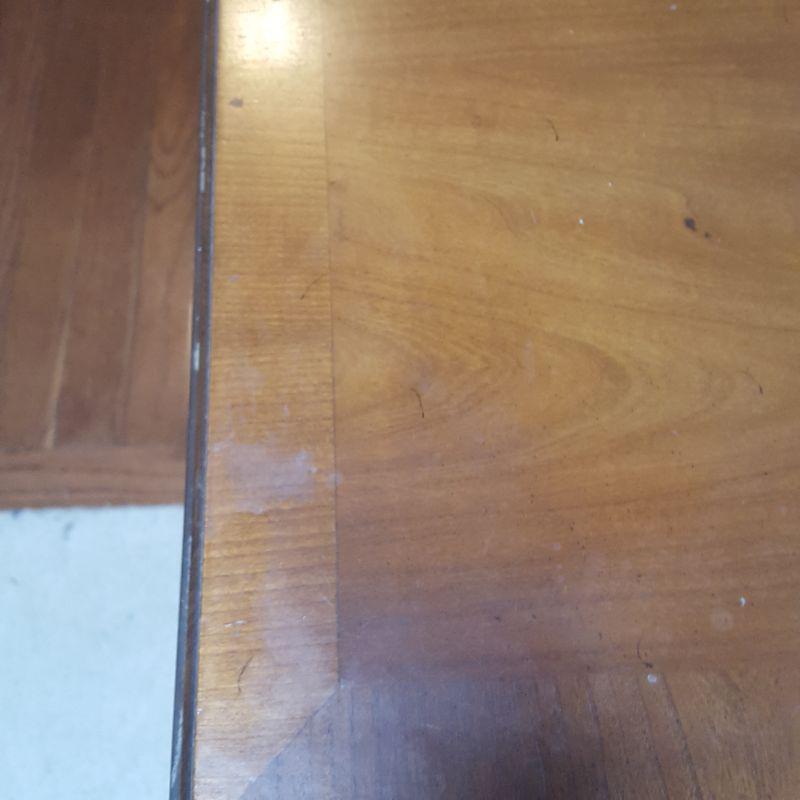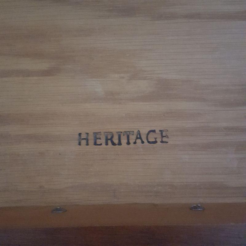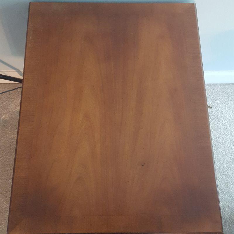 This lot comes with two nice looking end tables, both featuring dove tail drawers. The first one is made of mahogany and has beautiful Edwardian style details, see pictures. There are two minor scratches on it, see pictures. It measures 24 x 18 x 24 in. The second one is made by Heritage and has a more worn table top. This table measures 20 x 26 x 23 in