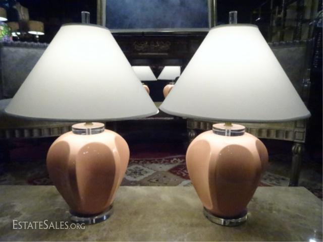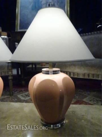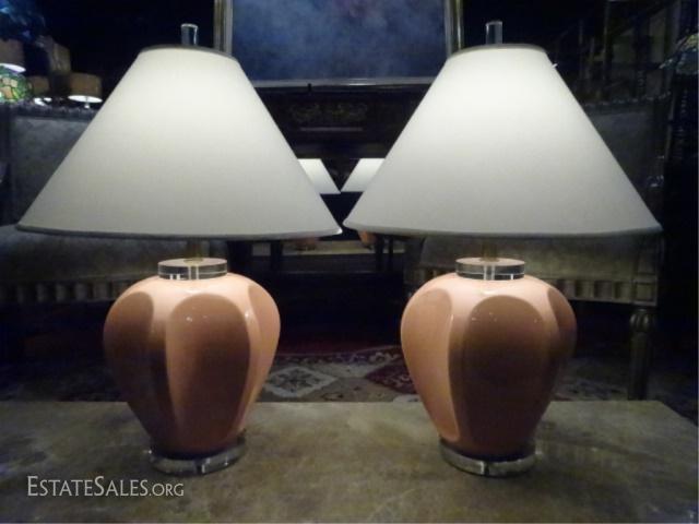 LOT 117: PAIR VINTAGE CERAMIC AND LUCITE LAMPS