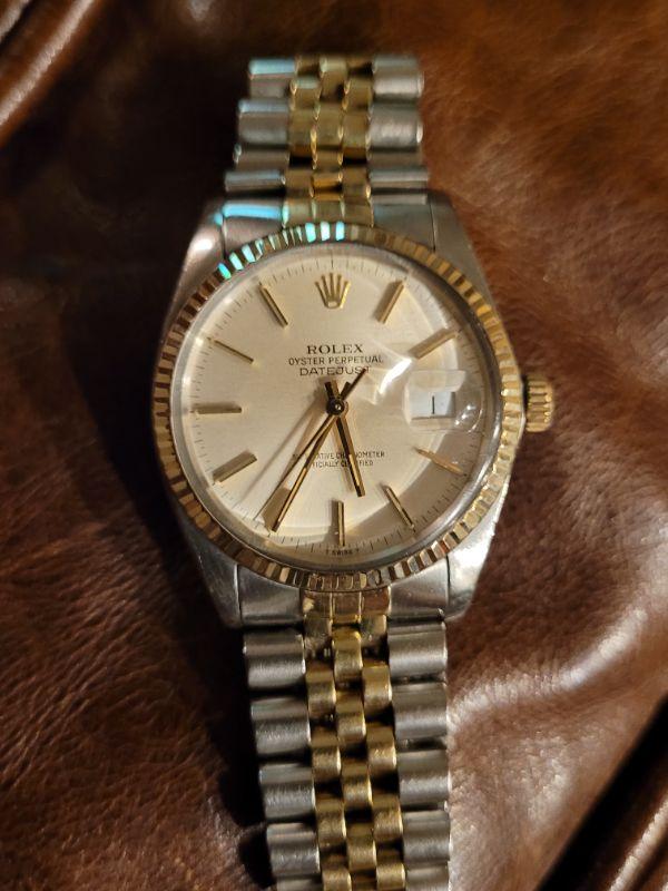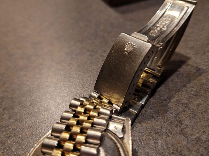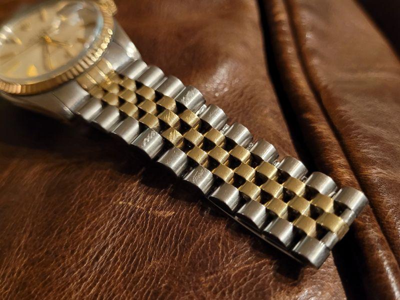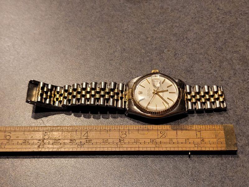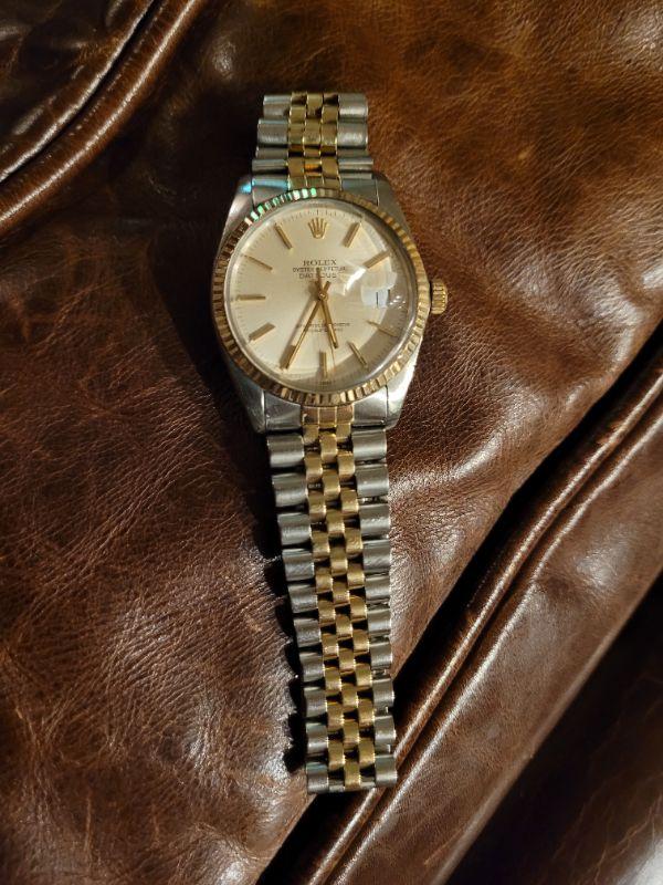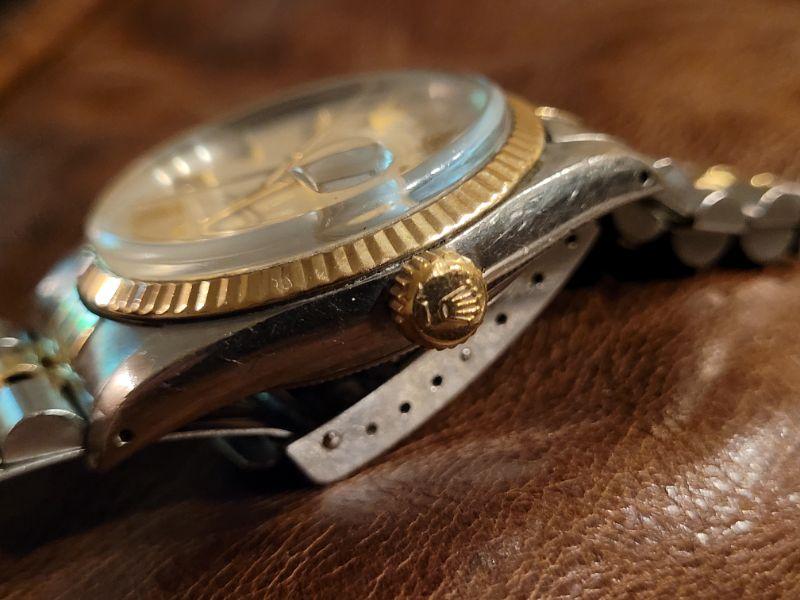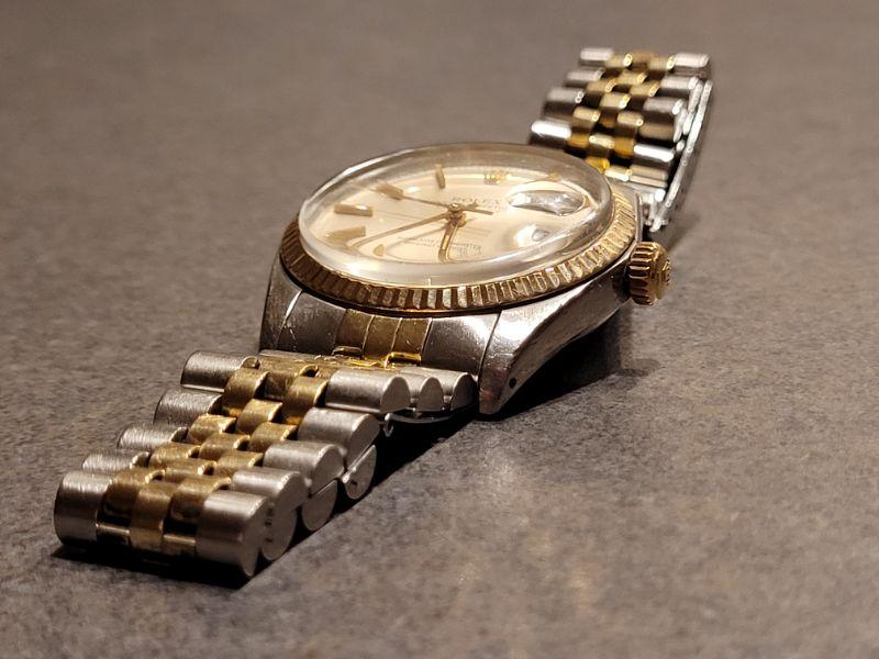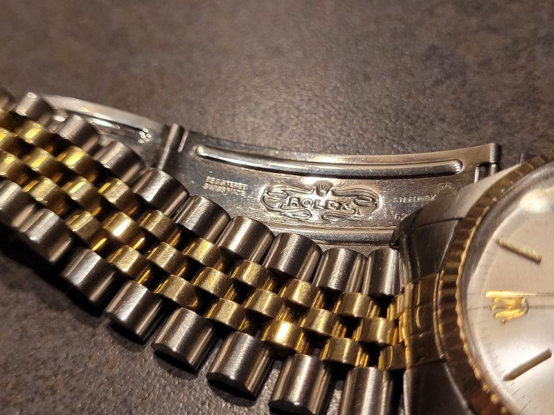 WHAT BETTER WAY TO CELEBRATE THE PASSING OF TIME WITH STYLE. 14K YELLOW GOLD FLUTED BEZEL ON TOP OF STEEL CASE WITH ORIGINAL JUBILEE BRACELET LOOKS STUNNING ON THE WRIST. CASE WITH CROWN COMES IN AT 38.5mm. THE JUBILEE ORIGINAL 14K YELLOW GOLD AND STEEL BRACELET IS ORIGINAL AND IN NEED OF A SOFT CLOTH POLISH AFTER BEING CLEANED ULTRASONICALLY TO REMOVE ALL DIRT/GRIME IN THE LINK BEDS. NO BOX, PAPERS OR OTHER ACCESSORIES. AS WITH ALL VINTAGE WATCHES, WE SUGGEST AN IMMEDIATE SERVICE BY A ROLEX AUTHORIZED SERVICE CENTER TO ENSURE CONTINUED ACCURATE TIMEKEEPING - ALL WATCHES ARE SOLD AS IS, THERE ARE NO RETURNS FOR ANY REASON AND THERE ARE NO WARRANTIES. LOCAL PICKUP ONLY AND BUYER MUST SIGN A RECIEPT DOCUMENT ONCE ITEM IS PICKED UP. PLEASE MAKE SURE YOUR CARD ON FILE HAS SUFFICIENT FUNDS TO COVER THE FINAL HAMMER PRICE + SALES TAX AND BUYERS PREMIUM ☆☆ Please view all pictures to determine if the condition meets your personal standards. Please ask any questions prior to bidding to ensure your complete satisfaction. By placing a bid, you are agreeing to all auction terms defined in the TERMS Section of this event.