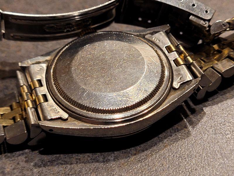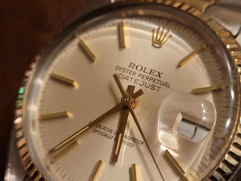 ☆☆ AUTHENTICATED AND TESTED A+. AUTOMATIC MOVEMENT IS CURRENTLY KEEPING TIME NICELY AFTER A 24 HOUR TEST. ☆ THE ONLY QUIRK NOTICED DURING INSPECTION WAS THAT THE MOVEMENT NEEDED TO BE JIGGLED A BIT TO ENGAGE THE MOVEMENT TO START AFTER RUNNING DOWN AND NEEDING TO BE REWOUND MANUALLY. THE CASE AND BRACELET BOTH SHOW THE DEGREE OF SMALL SCUFFS AND MINOR DINGS TO BE EXPECTED WITH A WATCH THAT HAS BEEN WORN OVER THE COURSE OF 40+ YEARS☆ THIS WATCH HAS NO MONOGRAMS OR OTHER PERSONALIZED CHARACTERISTICS AS IT REMAINS IN FACTORY CONDITION WITH ORIGINAL DIAL IN IMPRESSIVE CONDITION FOR AGE. THE BLACK AND WHITE BACKGROUND ROULETTE DATE WHEEL JUMPS JUST PRIOR TO 12:00 am AS DESIGNED FOR ALL DATEJUST EXAMPLES. WE DO NOT HAVE SERVICE HISTORY AVAILABLE.
