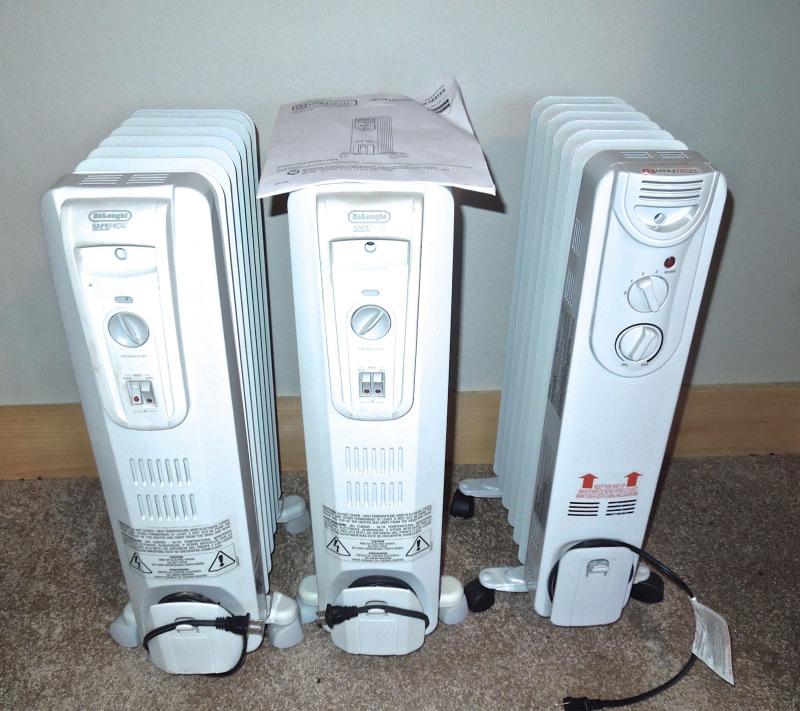 2 DeLonghi radiators model TRI-10715L; 1 Utilitech model SH-CH-11-T. No dents or scratches. Like new.
