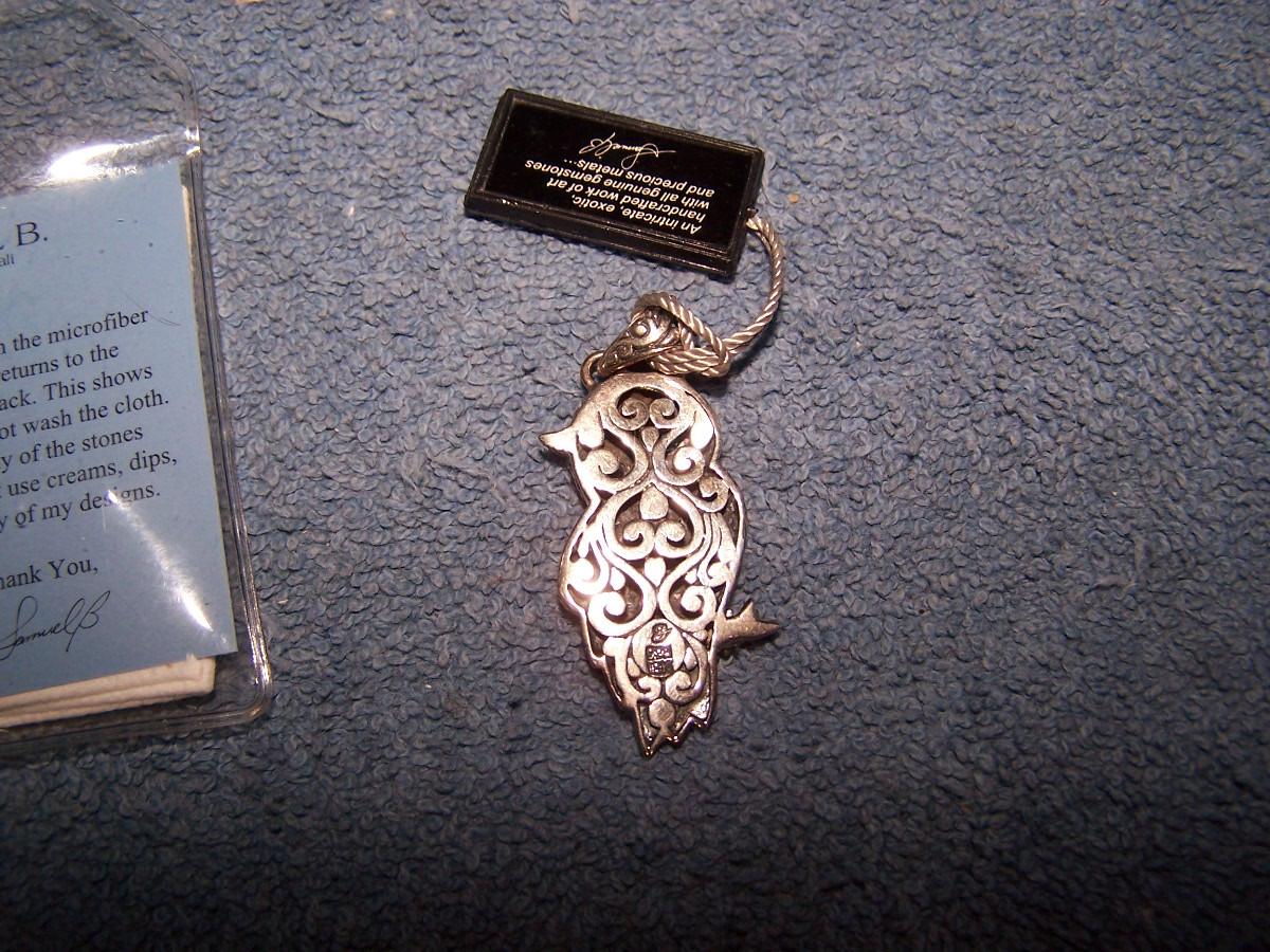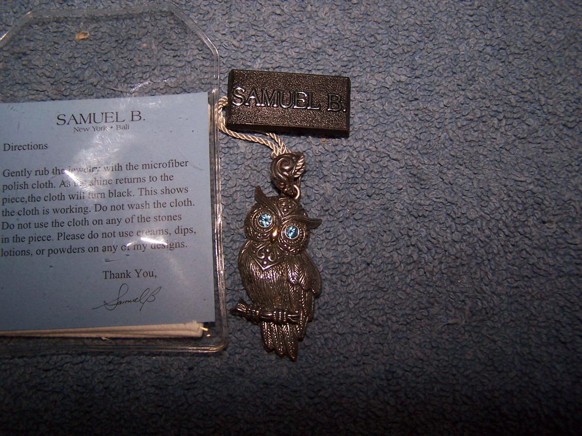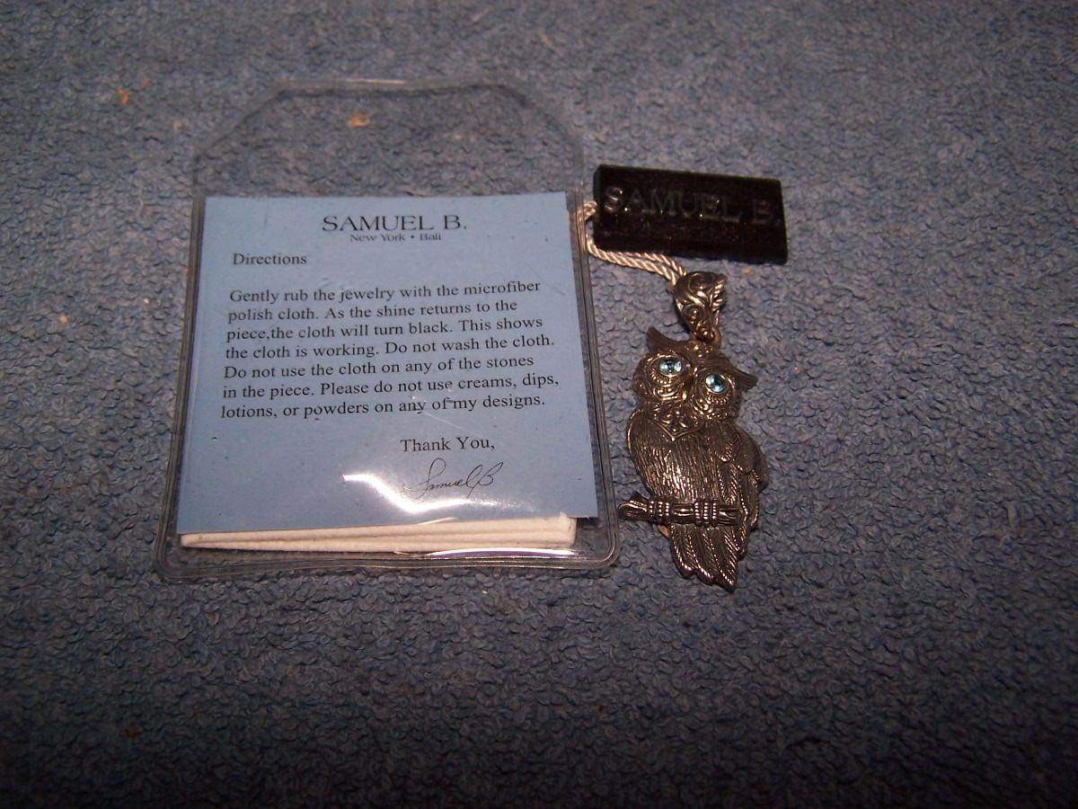 THIS IS A WONDERFUL SAMUEL B STERLING OWL PENDANT!!! MARKED. EYES ARE PROBABLY TOPAZ.. 2'' TALL, BALE TO TAIL.. 10.9 GR... NEAR MINT IN PACKAGE!