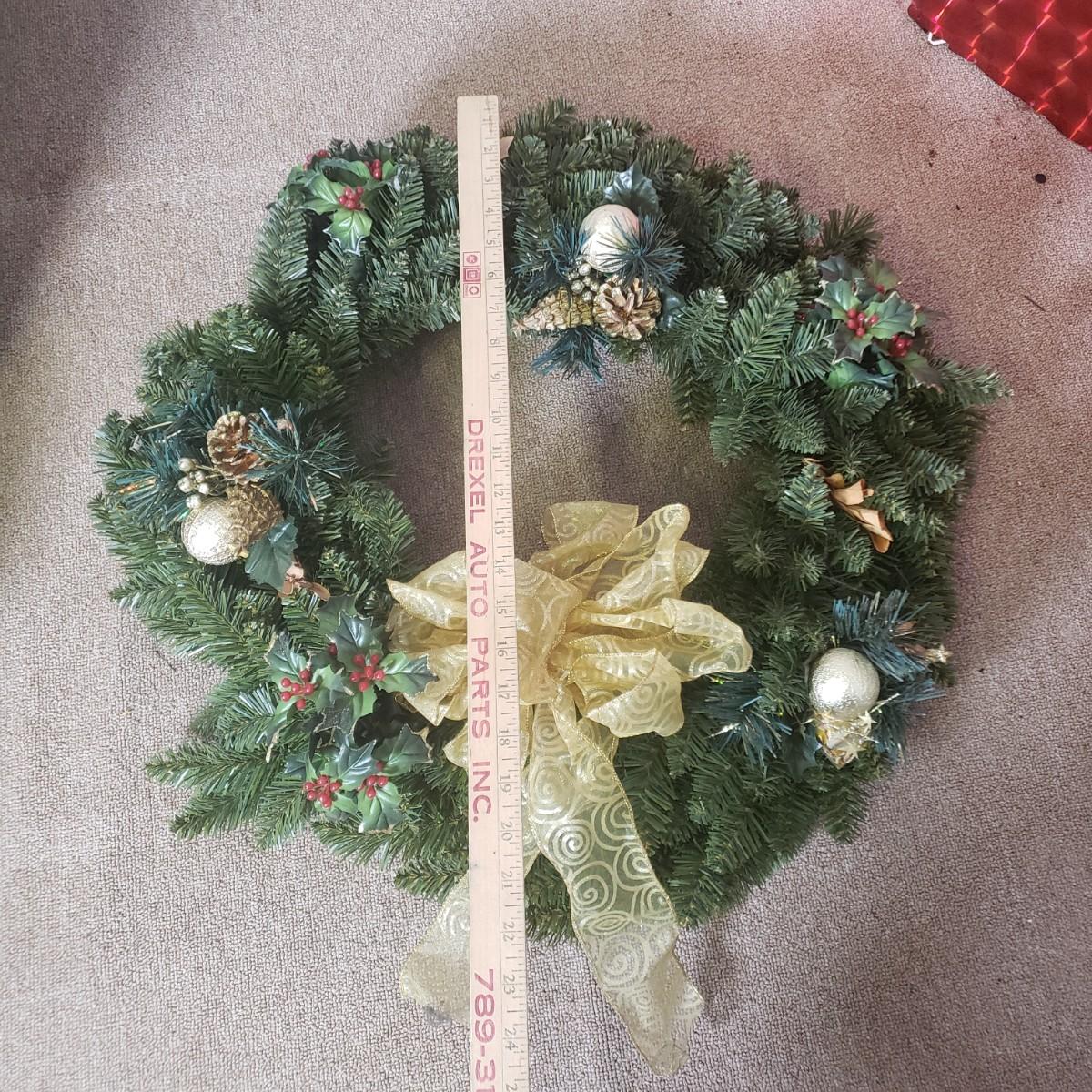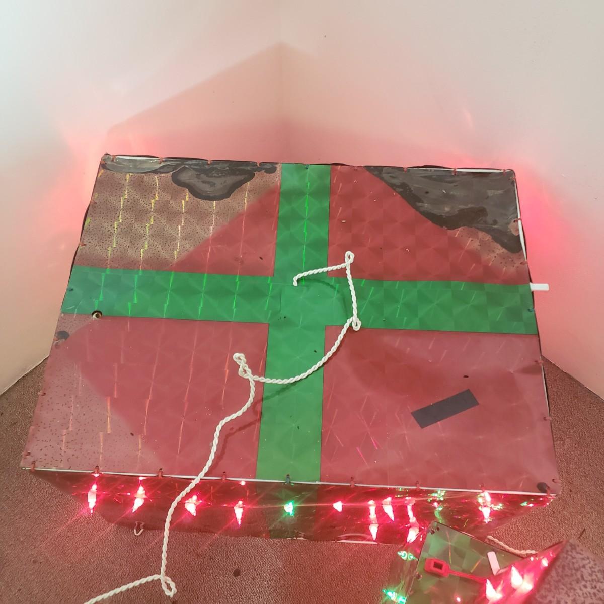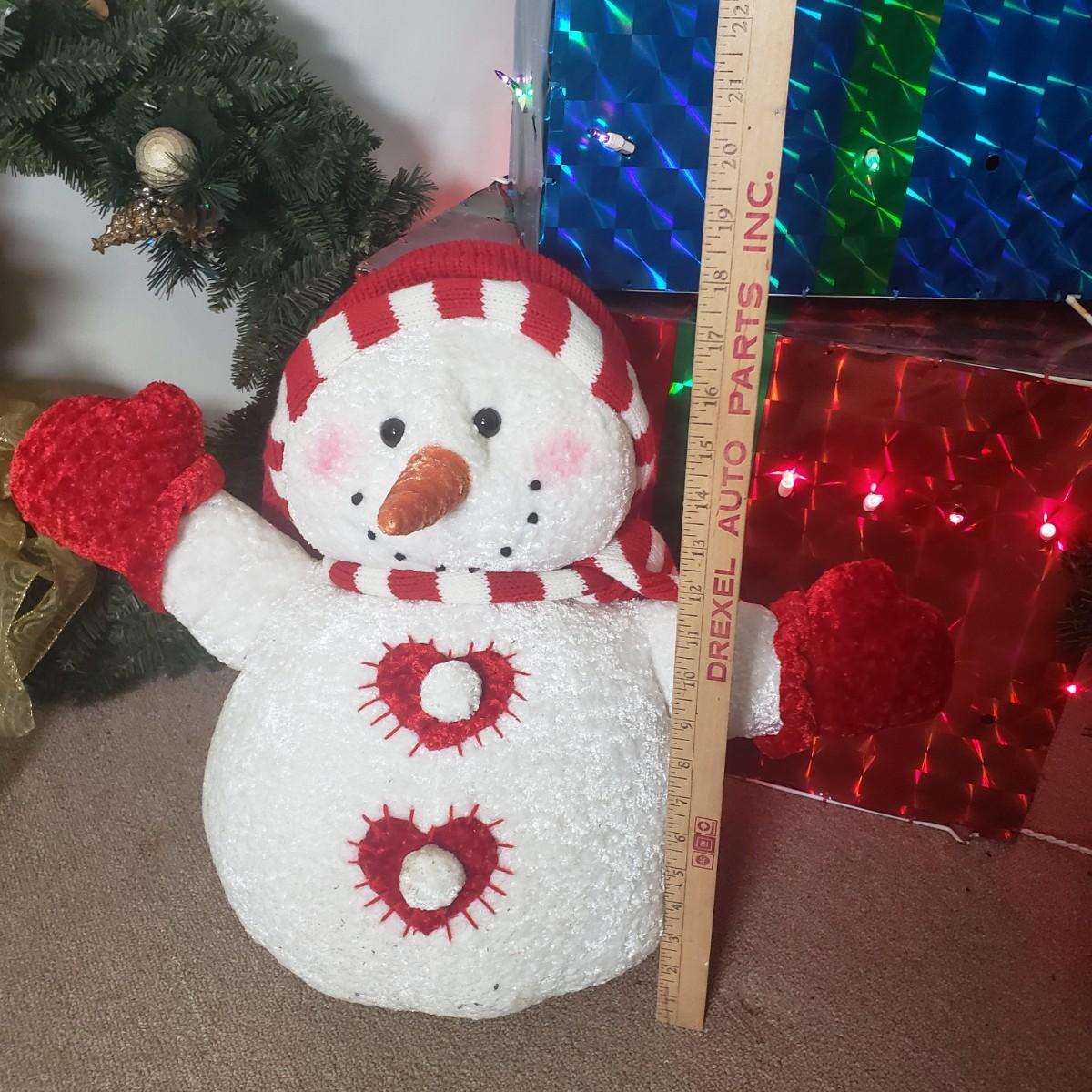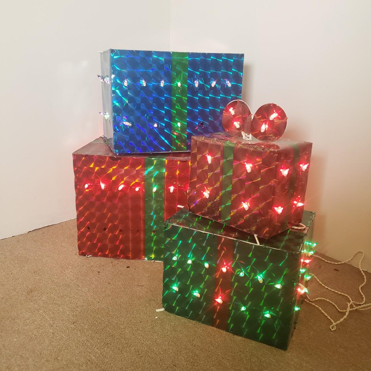 LOT 2B: Lighted Christmas Stack of Gifts with Two Wreaths & Large Plush Snowman
