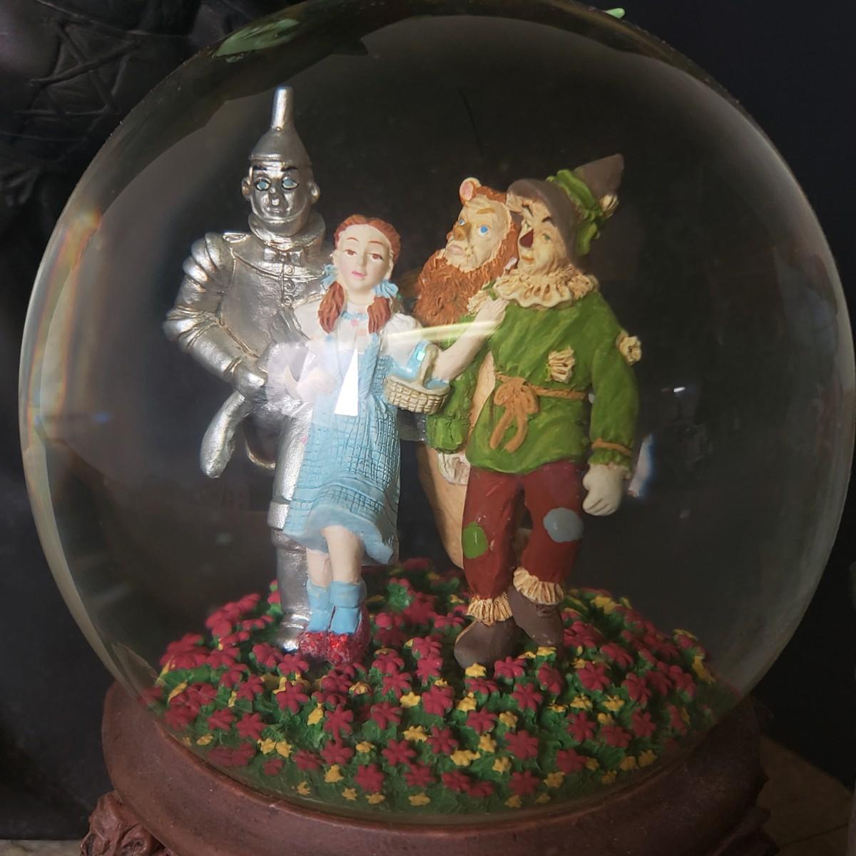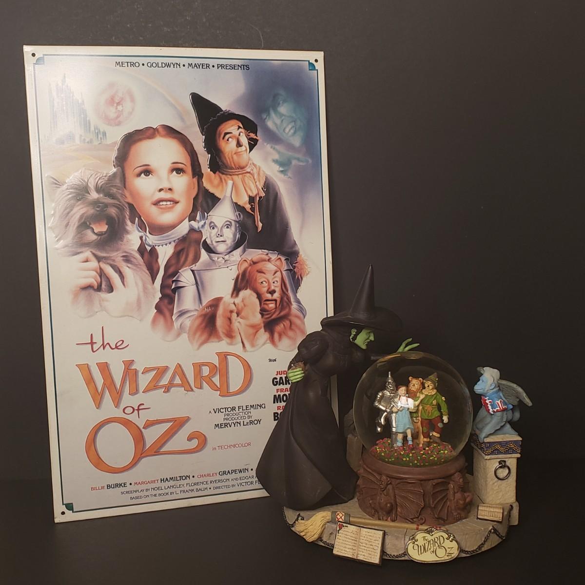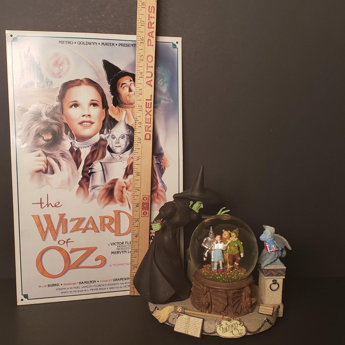 LOT 13B: Vintage Wizard of Oz Snowglobe by San Francisco Music Box Co & Tin Sign