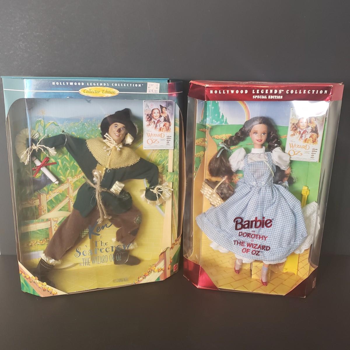 LOT 14B: Barbie & Ken as Dorothy & Scarecrow with Set of 6 Wizard of Oz Plush from Warner Bros Store