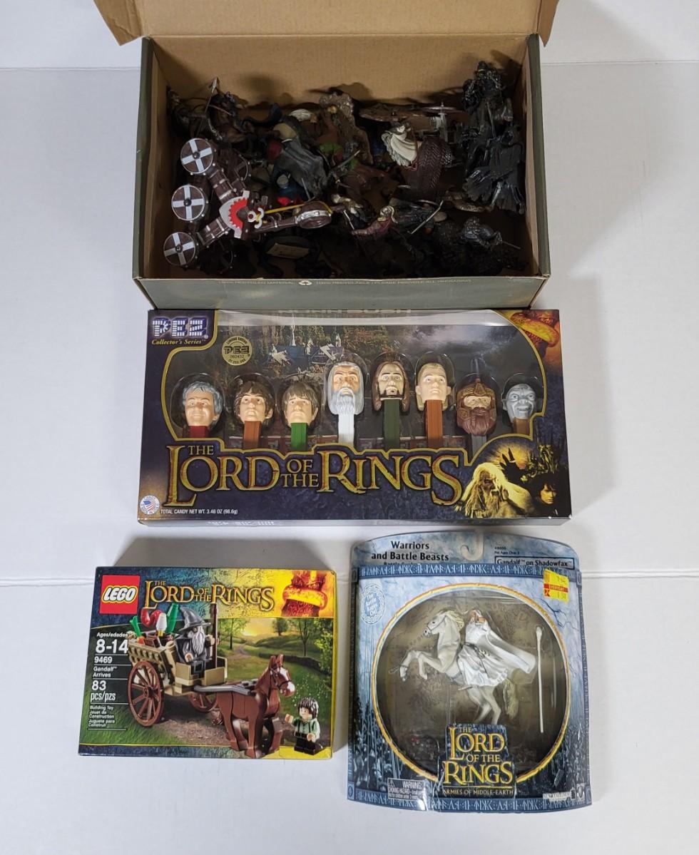 LOT 39B: Lord of the Rings Toy Lot Including Many Table Top Miniatures, Sealed Complete PEZ set and More