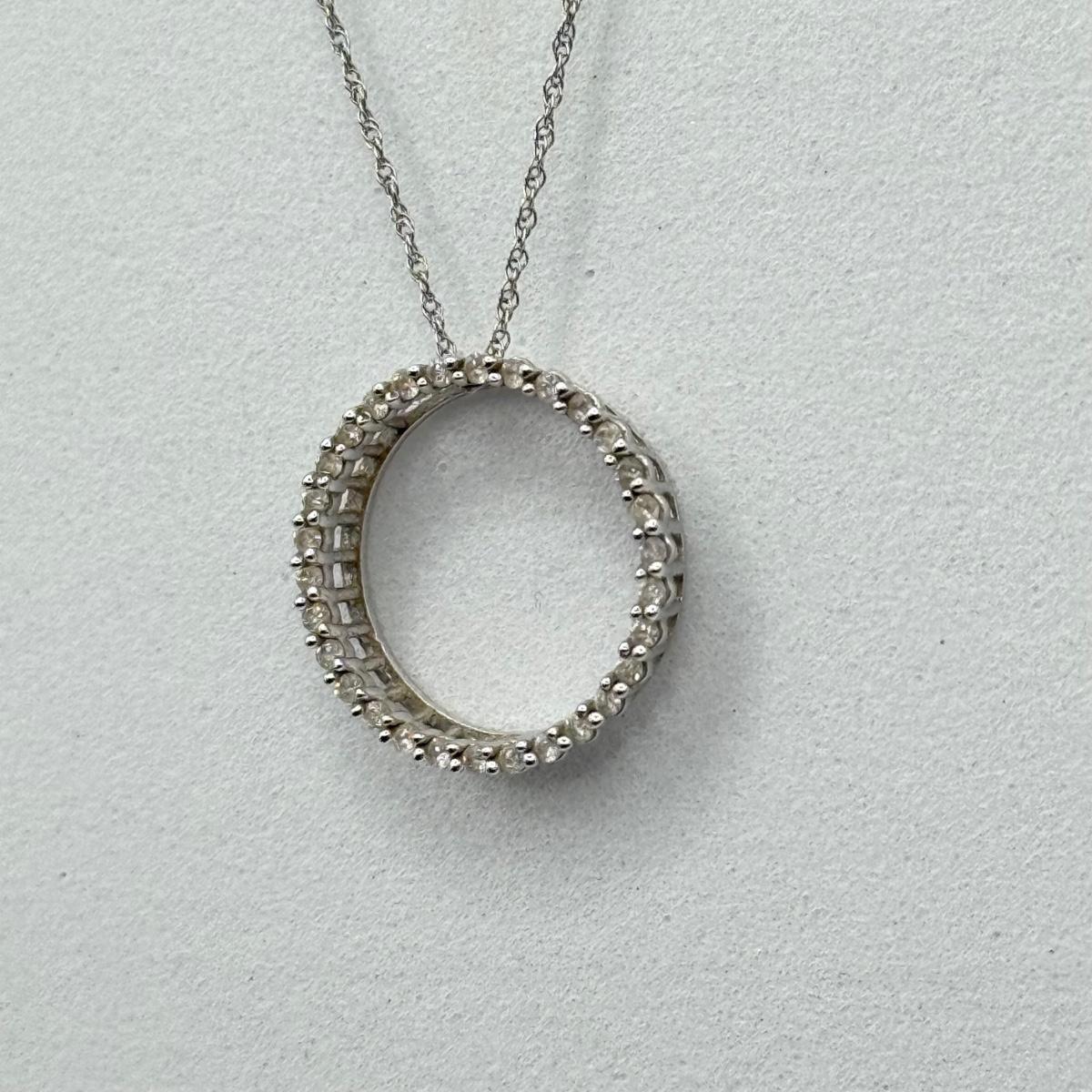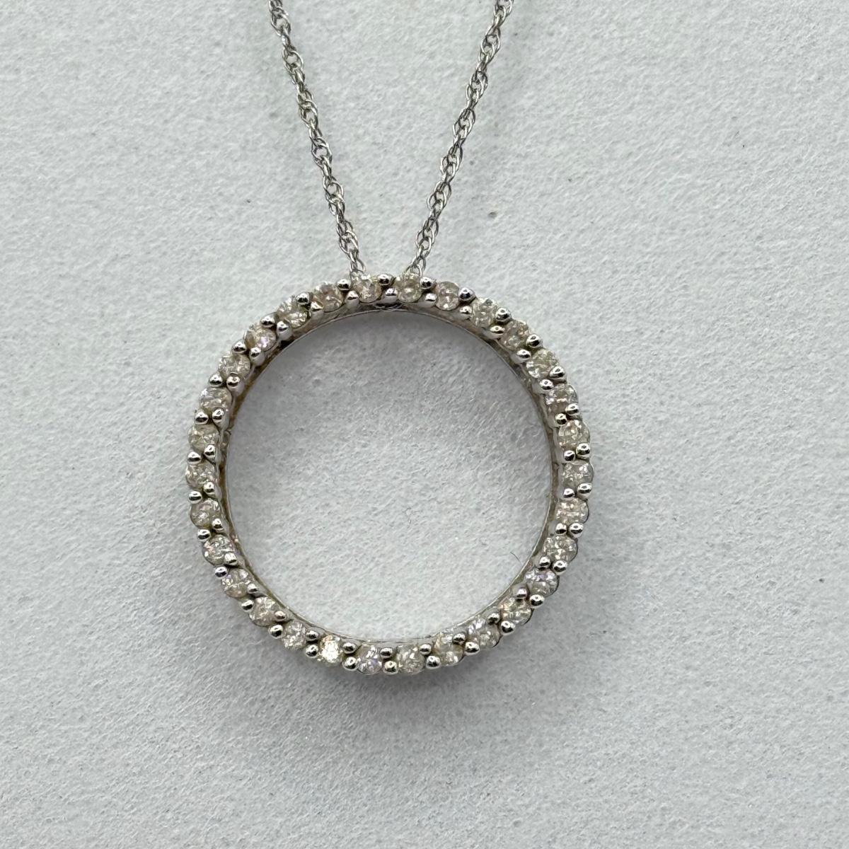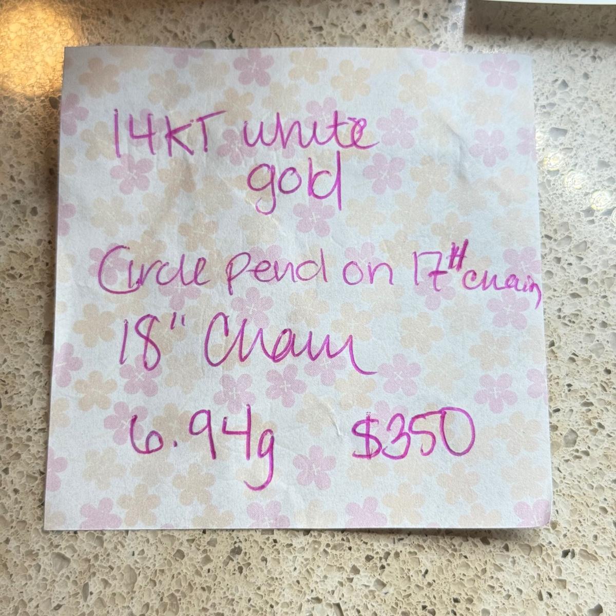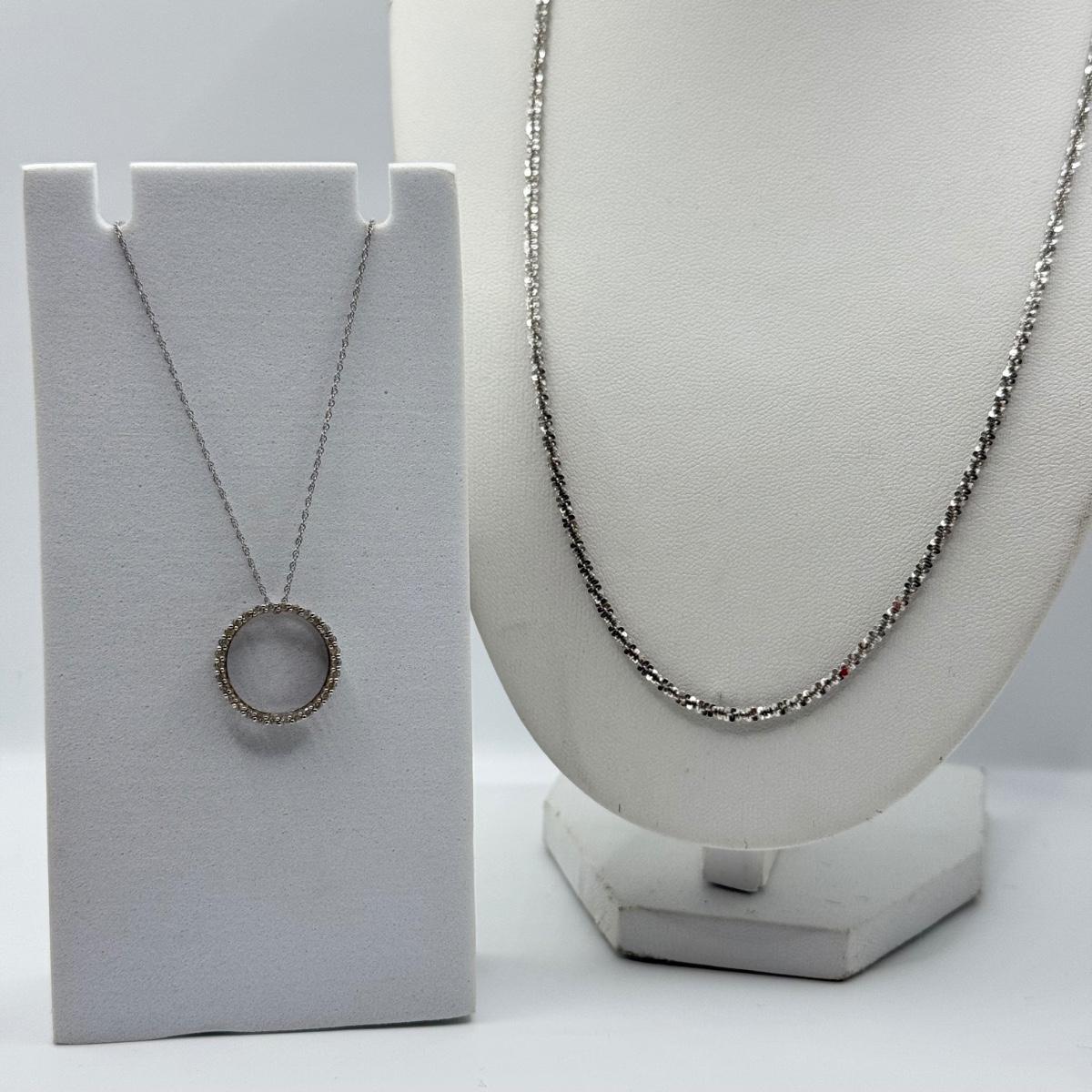 LOT 45J: 14kt White Gold: Circle Pendant on 17” Chain & 18” Chain (6.94g)