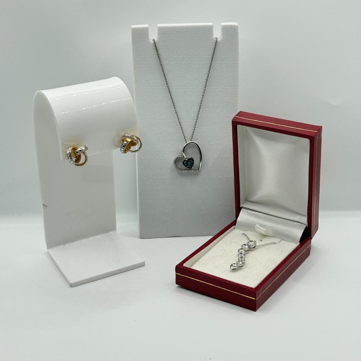 LOT 53J: Sterling Silver 925 Heart and Journey Necklaces & Pair of Knot Pierced Earrings (9.33g)