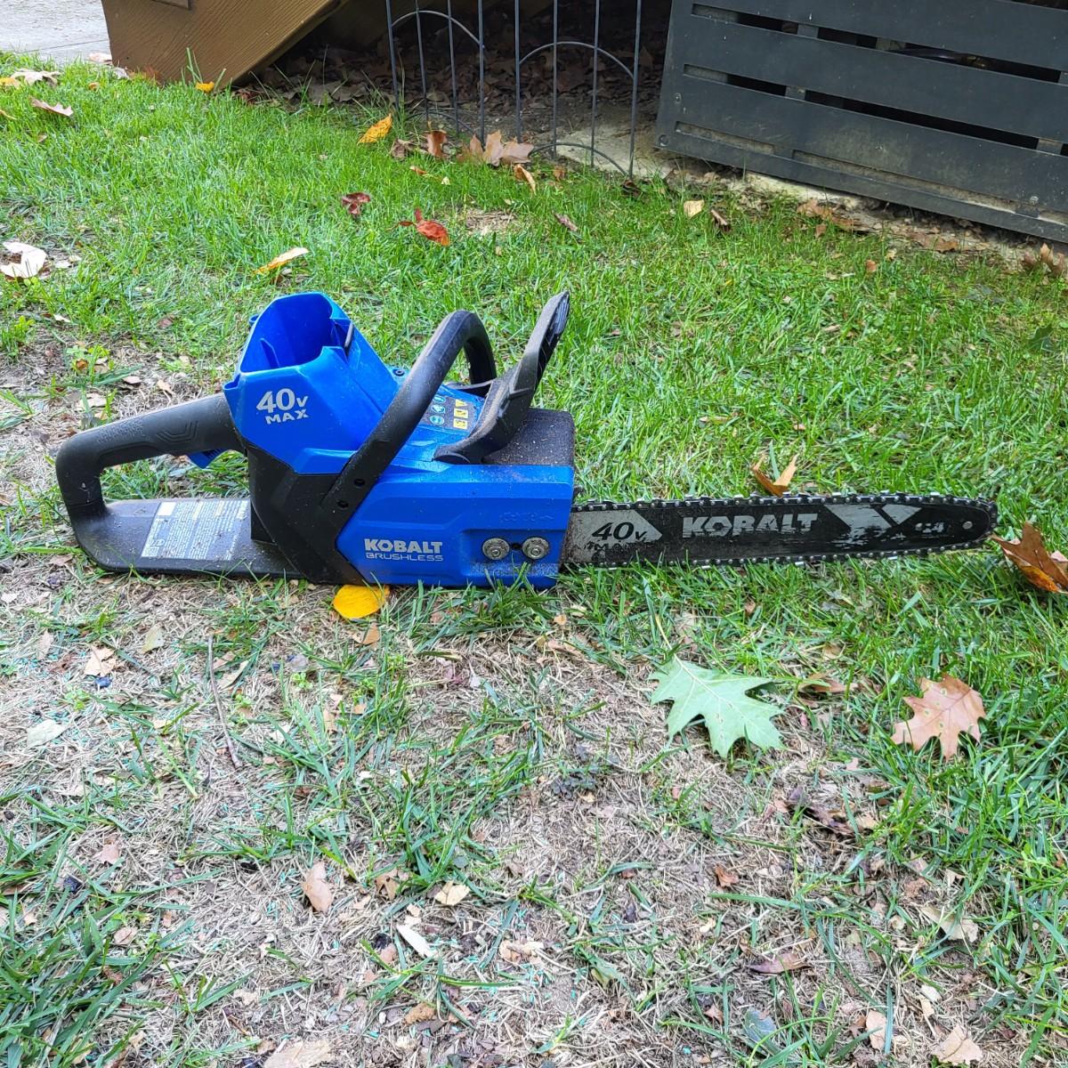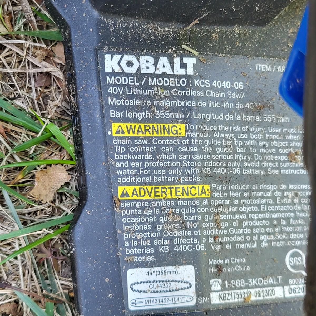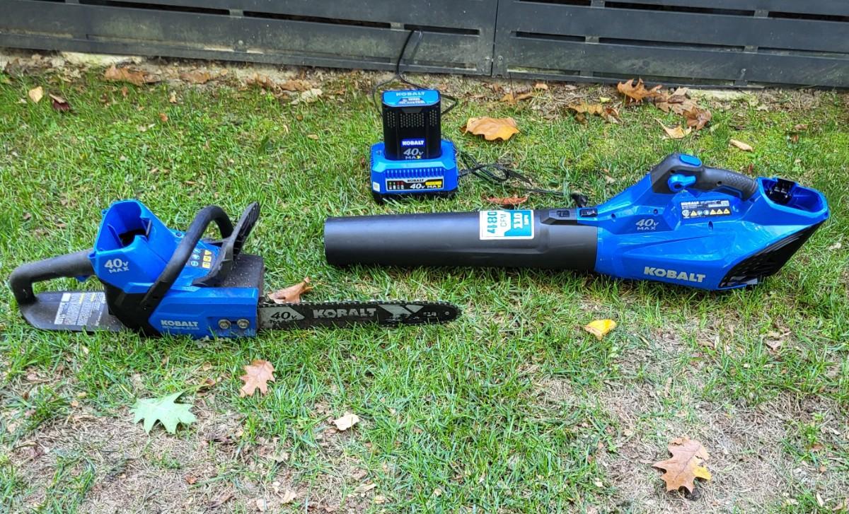 LOT 70S: Kobalt 40-volt 14-inch Cordless Electric Brushless Chainsaw & 40-volt Max Cordless Electric Leaf Blower with Battery & Charging Port