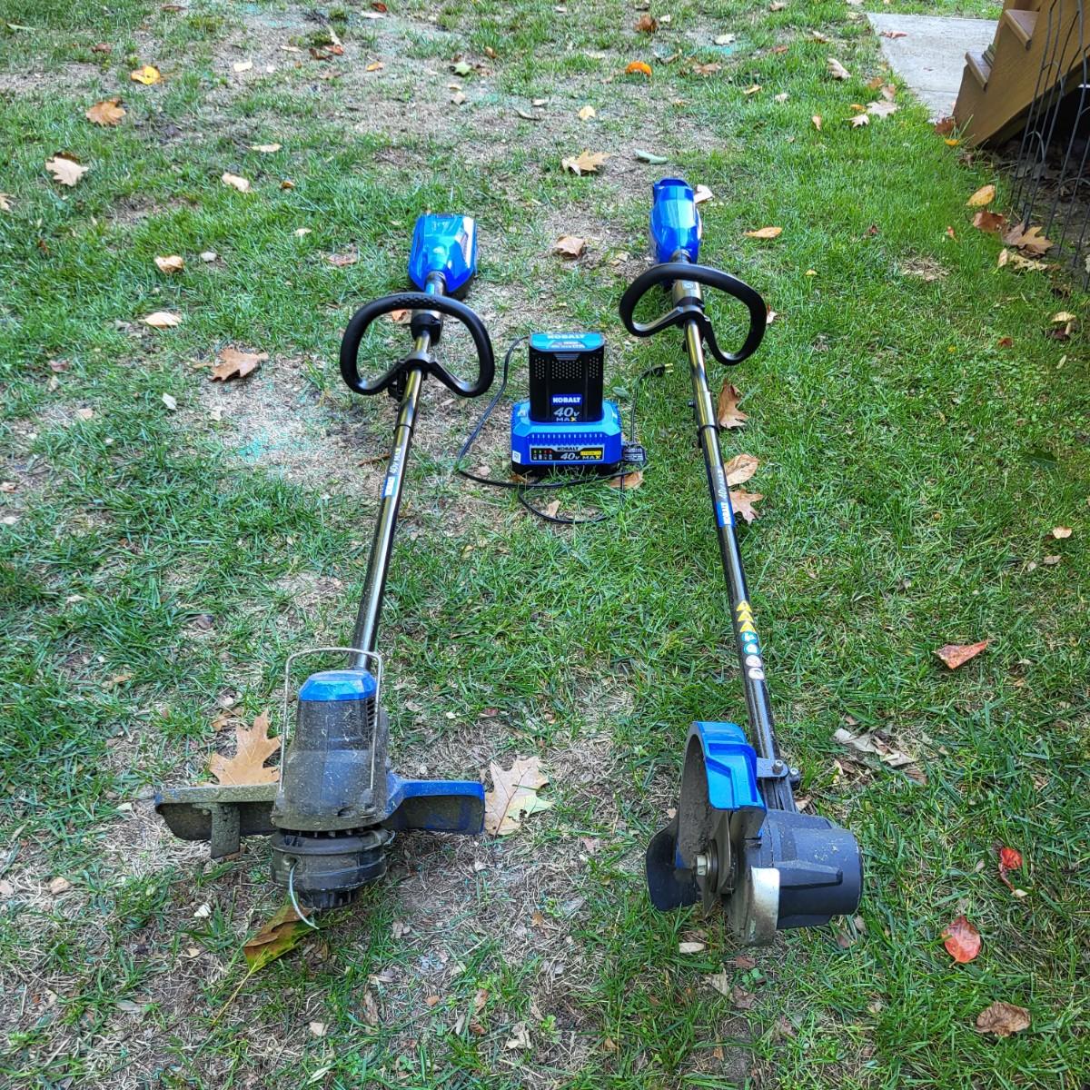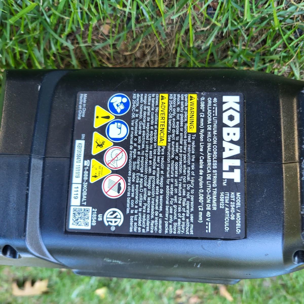 LOT 71S: Kobalt 40-Volt Max 15-inch Straight Cordless String Trimmer & 40-Volt 9-inch Handheld Battery Lawn Edger with Battery & Charging Port