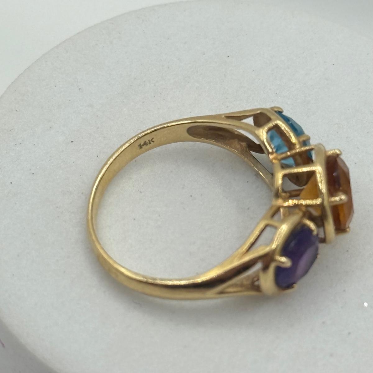 LOT 14kt Gold BJ Triple Stone Ring size 6.5 (3.27g)