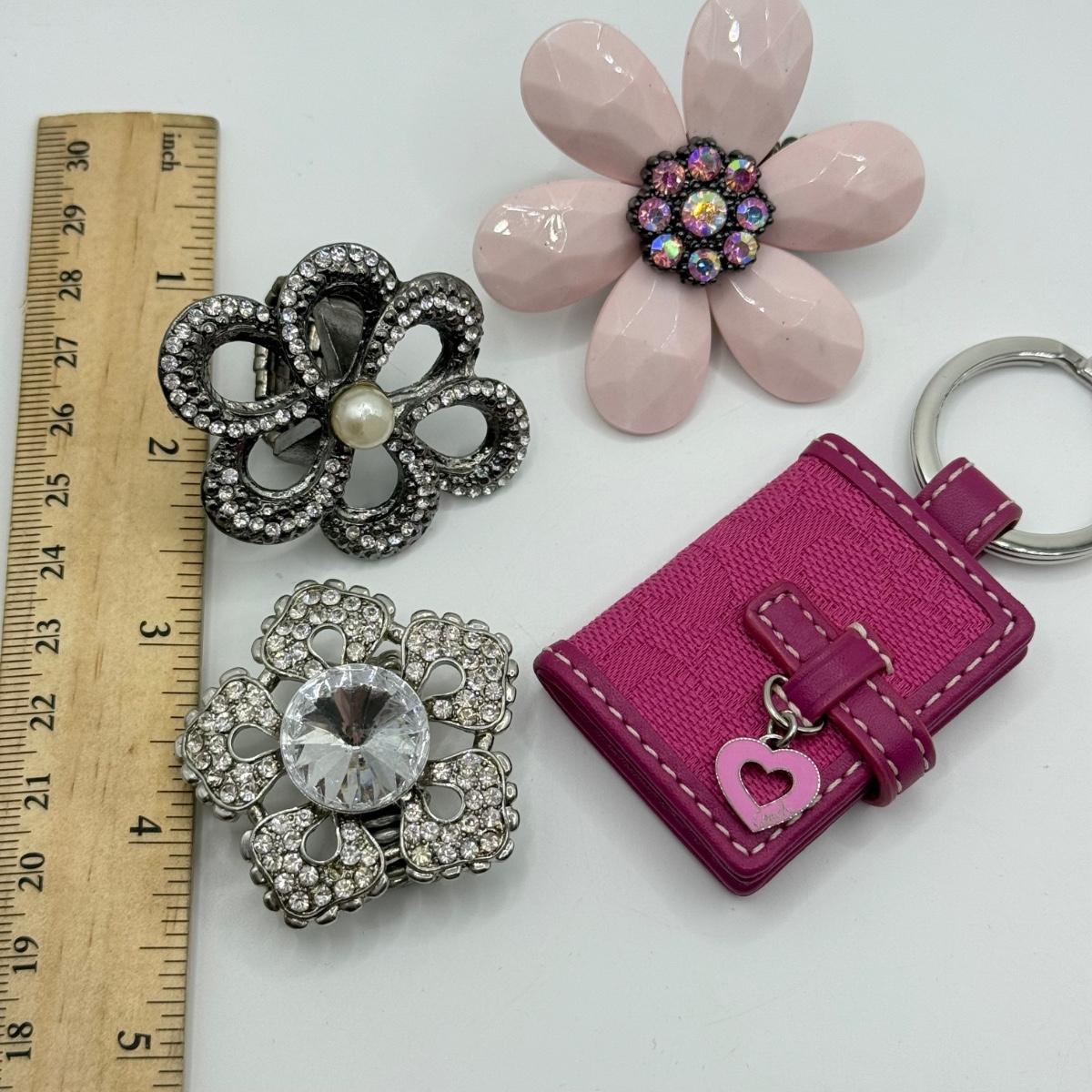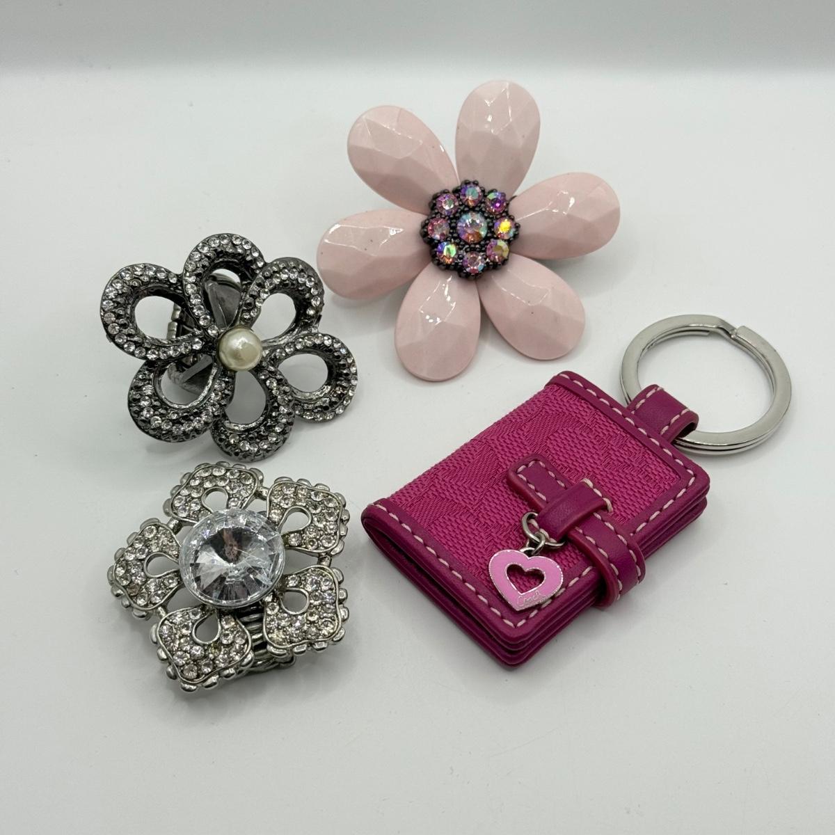 LOT 95J: Mini Pink Coach Keychain Wallet & Big Flower Rings