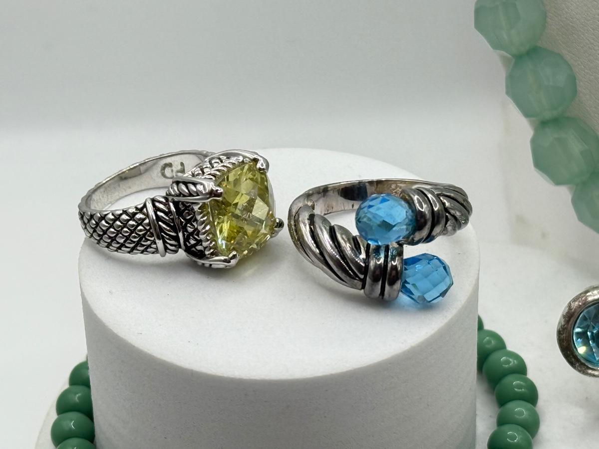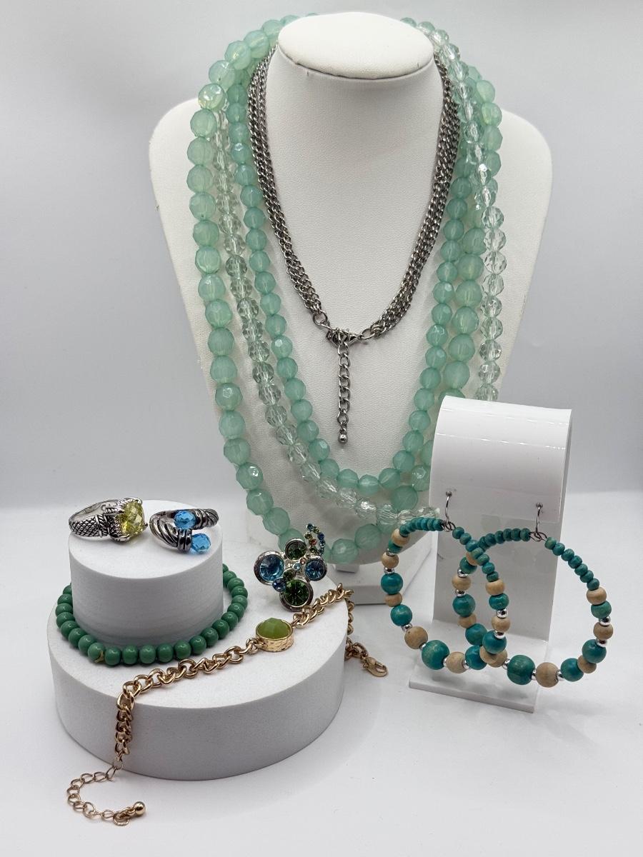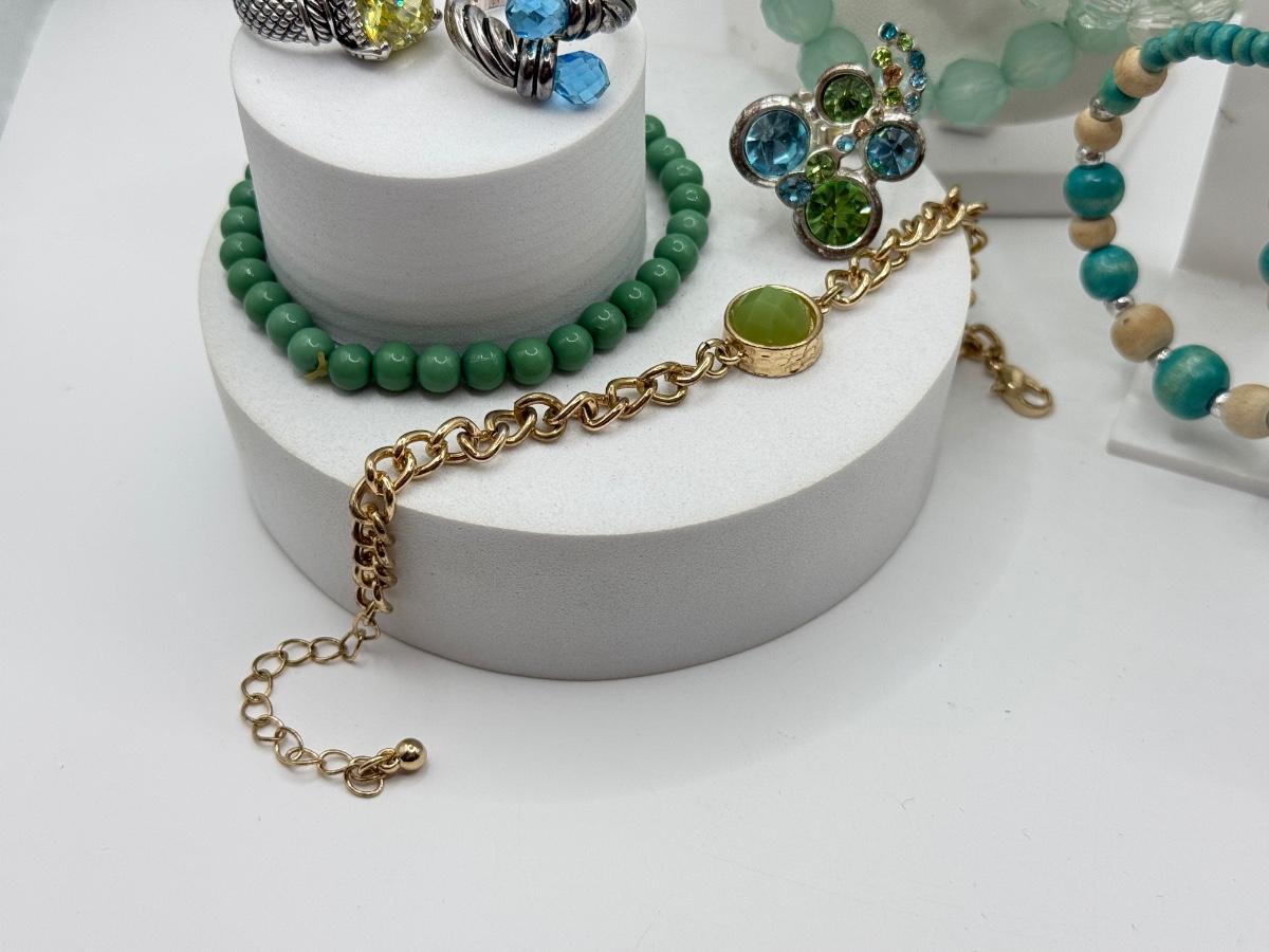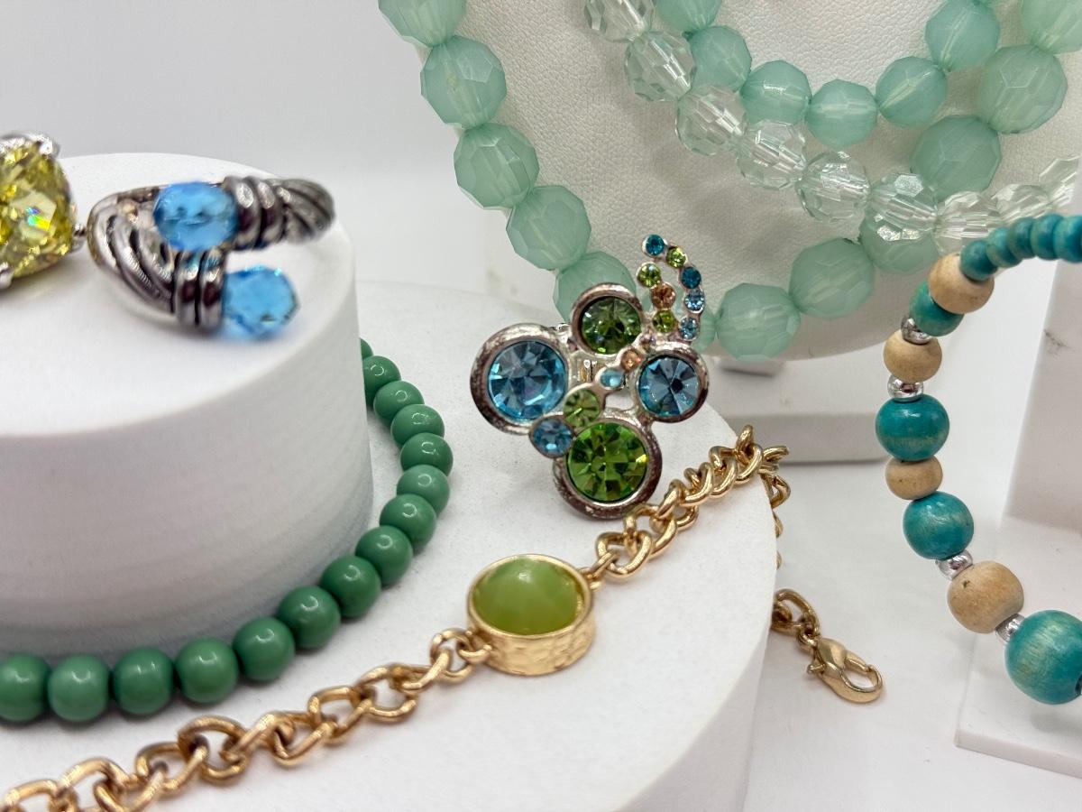LOT 96J: Collection of Necklaces, Bracelets, Rings & Pair of Beaded Hoop Earrings