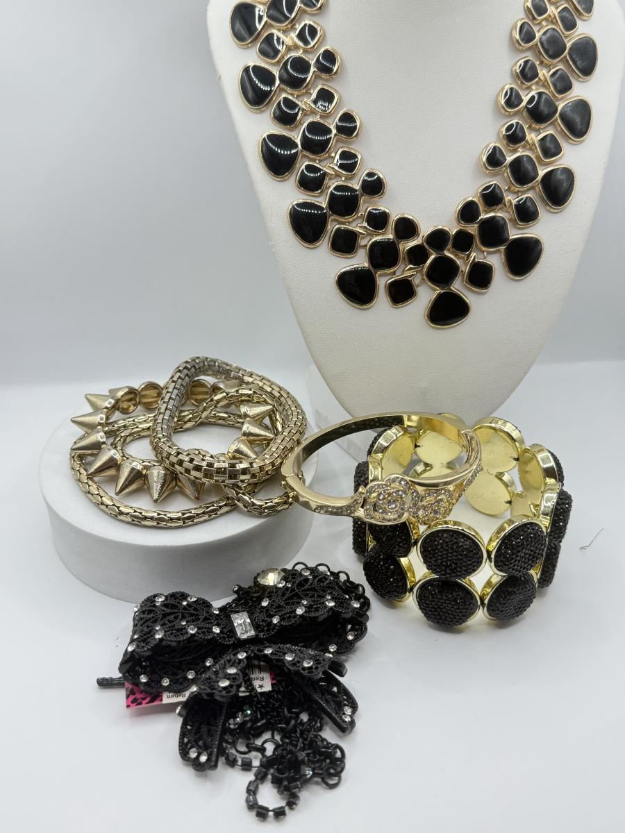 LOT 98J: Collection of Bracelets & Black Necklaces
