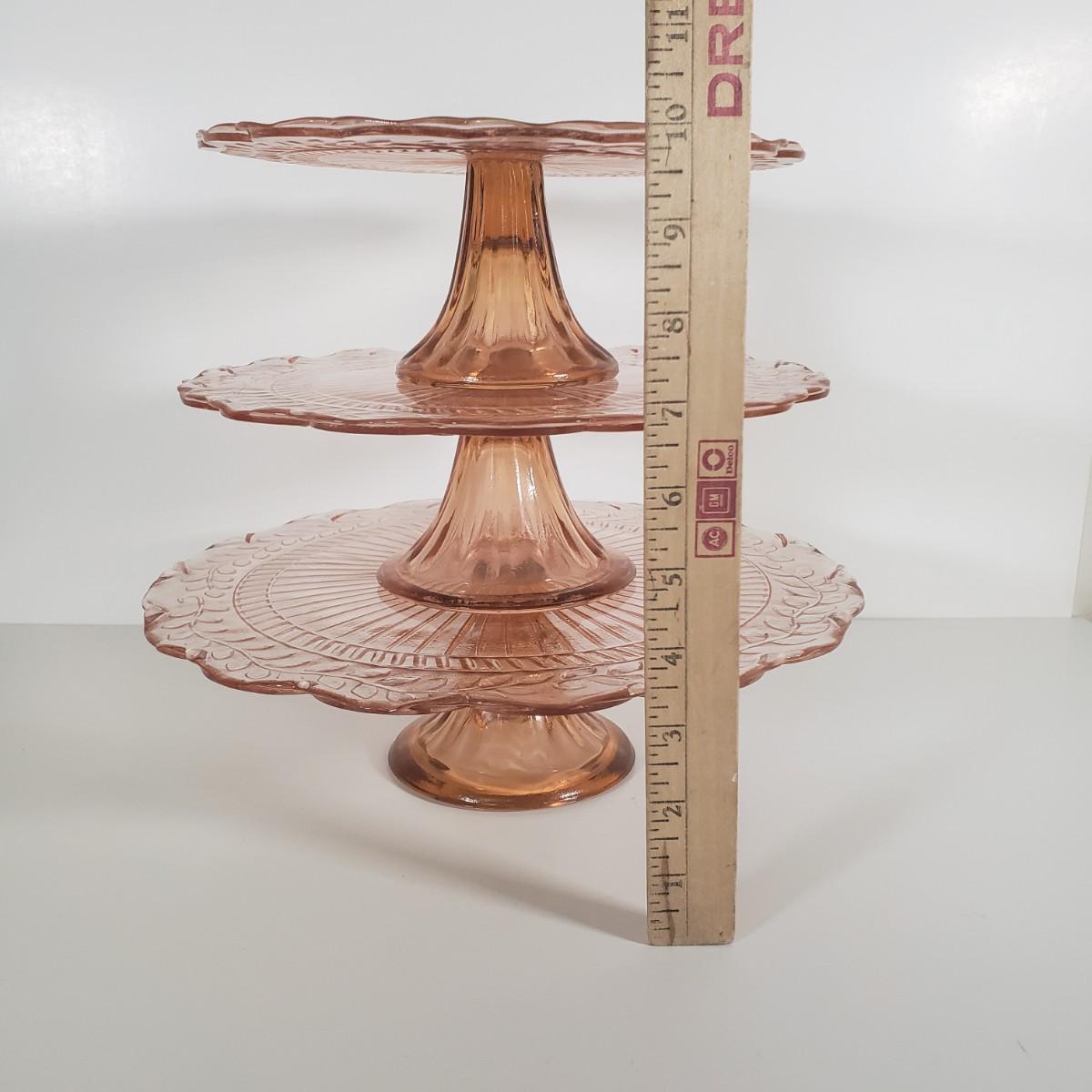 LOT 110B: Set of 3 Pink Depression Glass Cake Stands